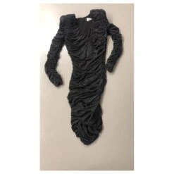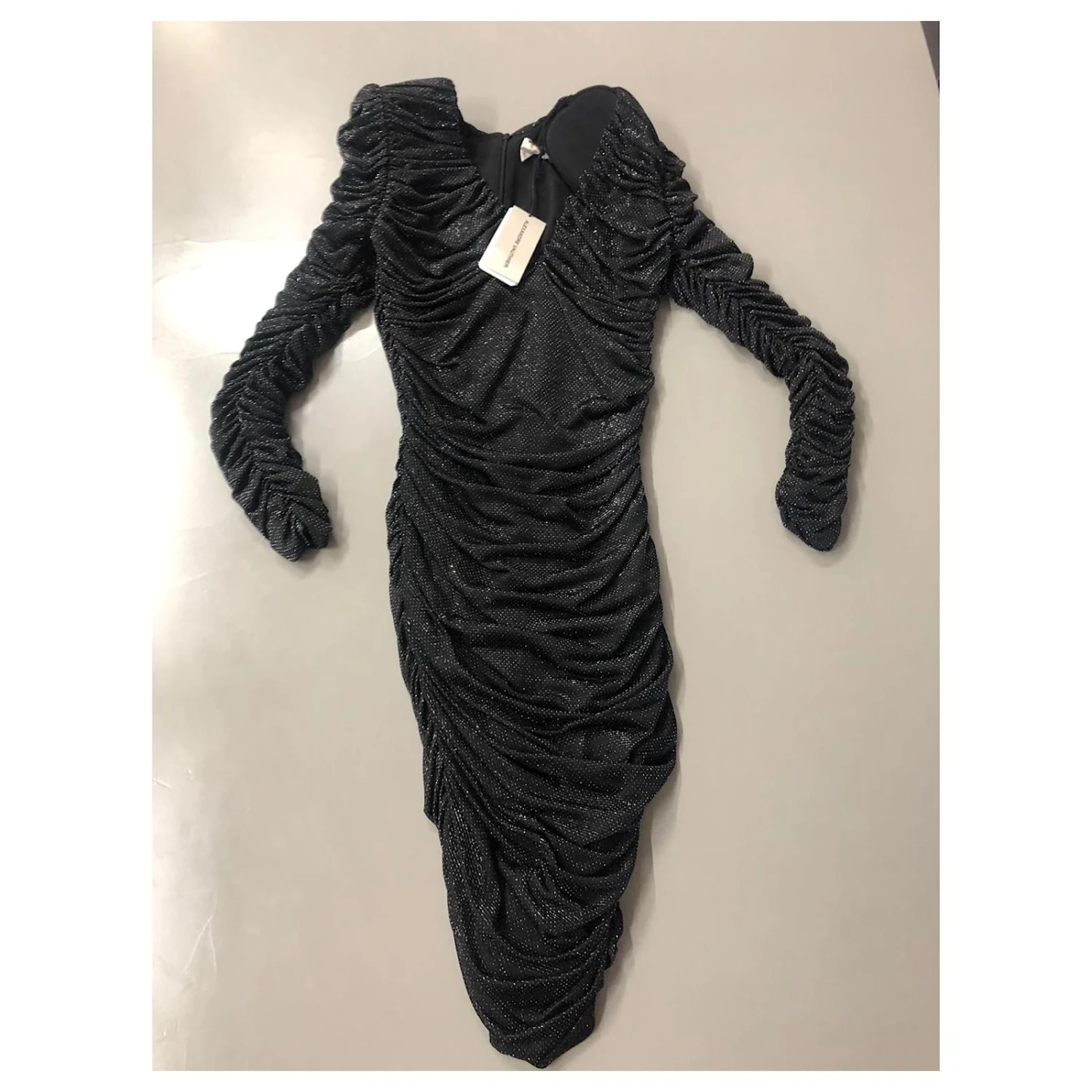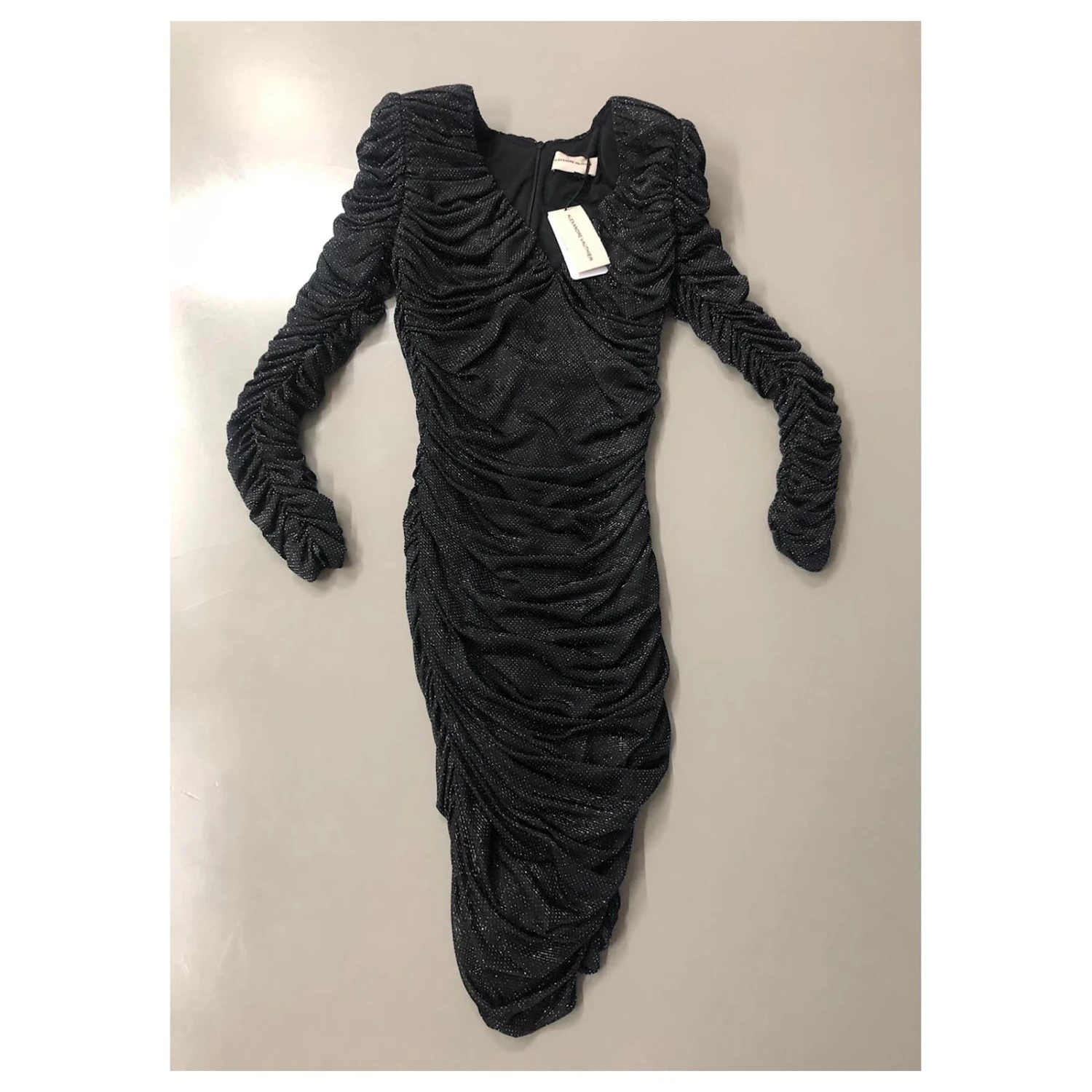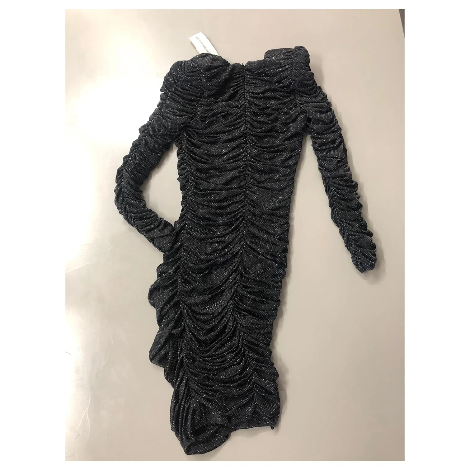 Robe noire drapée en V Alexandre Vauthier. Mélange de viscose drapé noir avec empiècements en lurex, Décolleté en V, épaules rembourrées, manches longues, fermeture zippée au dos, Courte longueur, Fully lined, Coupe extensible.