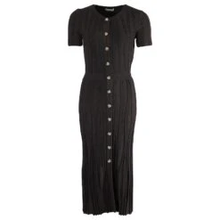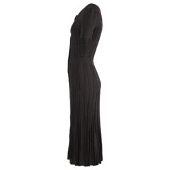 Joseph Altuzarra se tourne vers les décors italiens romantiques du roman Call Me By Your Name d’André Aciman pour son Resort 2019 Collection, résultant en des pièces élégantes comme cette robe noire Abelia. La coupe ajustée présente des manches courtes et une taille basse, puis tombe dans une longue jupe, complet avec une composition tricotée de style ondulé; rappelant à la fois le ciel d’été et le mouvement de l’océan. Associez-lui une ceinture en cuir et des escarpins à bride arrière, laissant quelques boutons défaits pour une note de nonchalance.