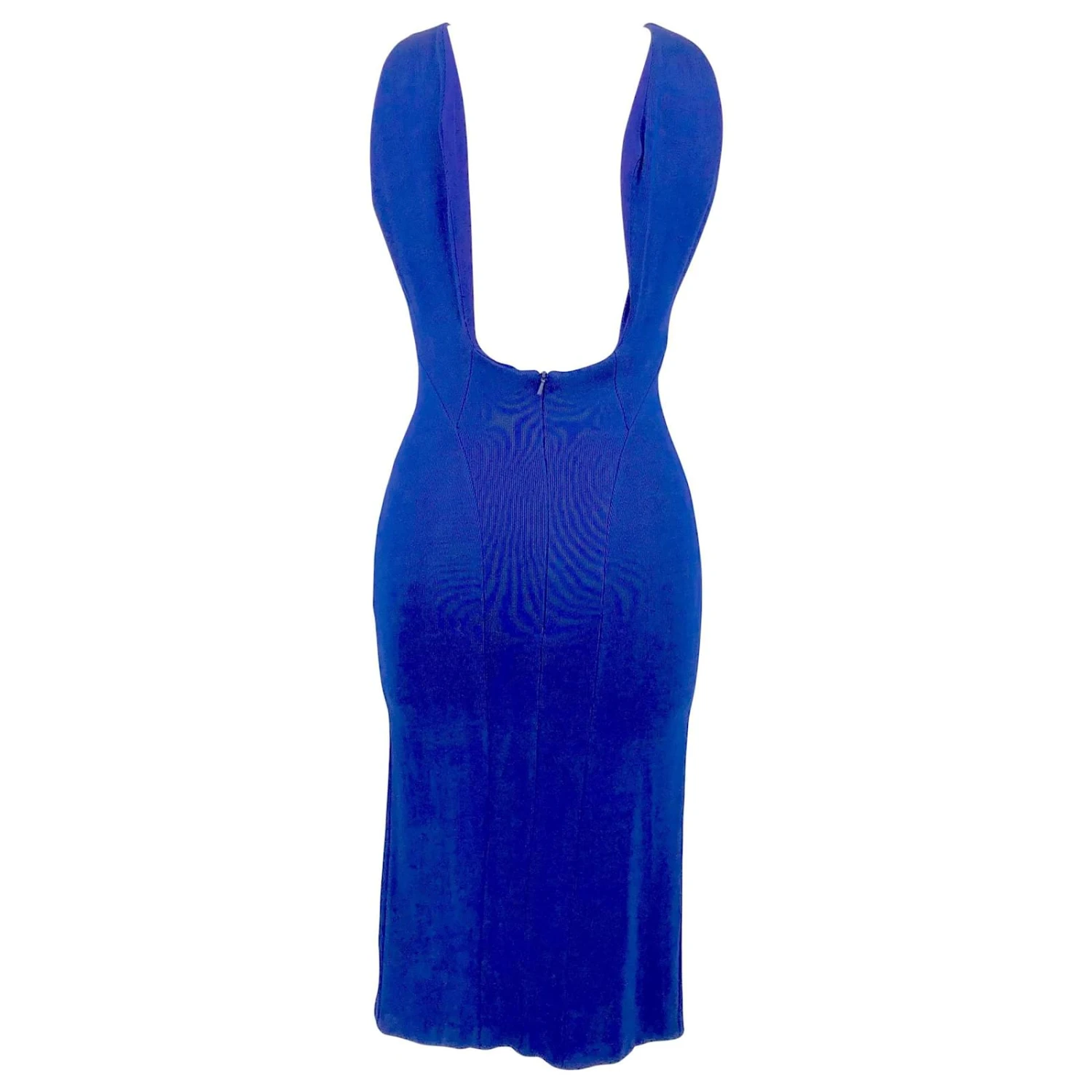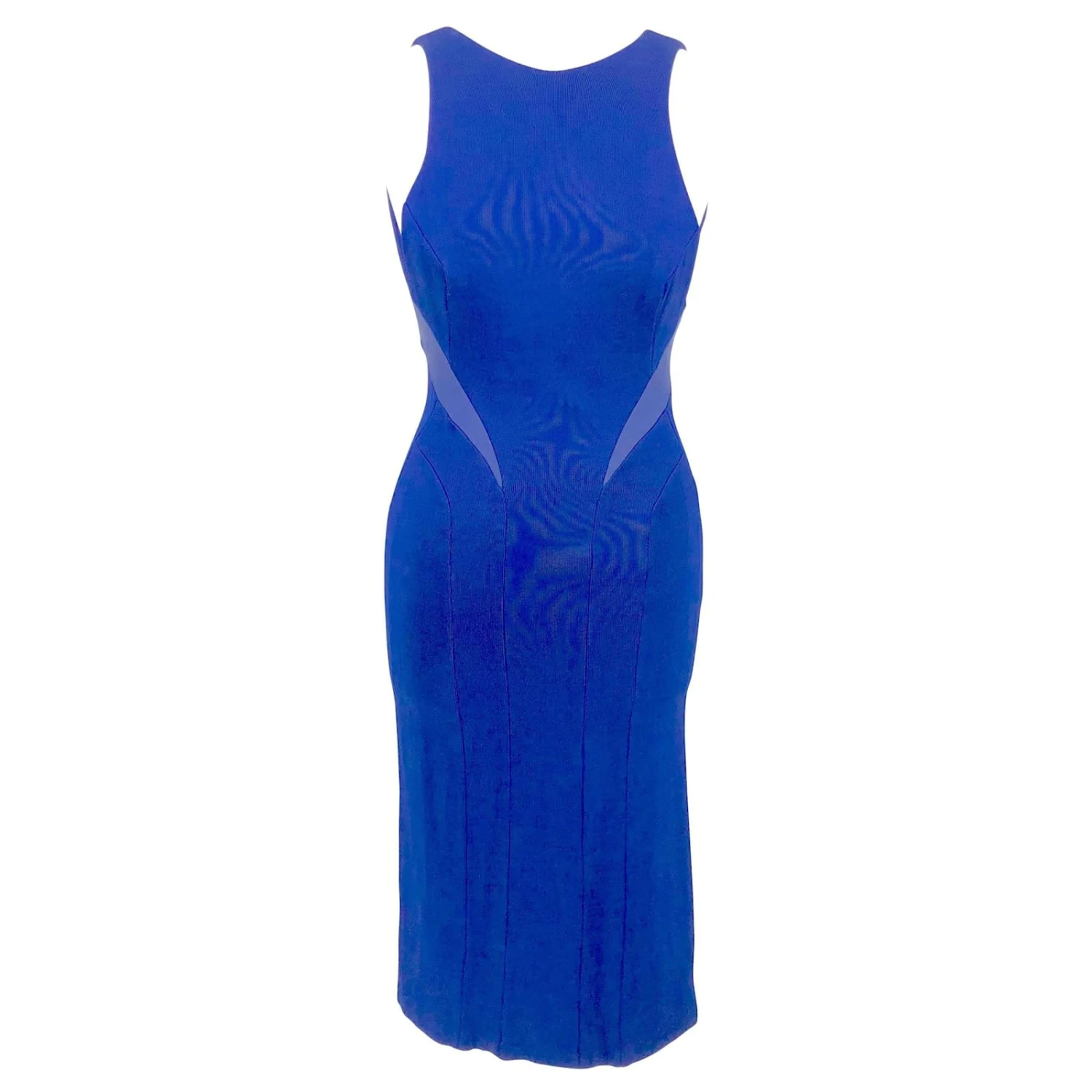 size 36 français. Avec stretch dans le matériau.Achetez cette robe droite en tricot bleu électrique de Galvan.