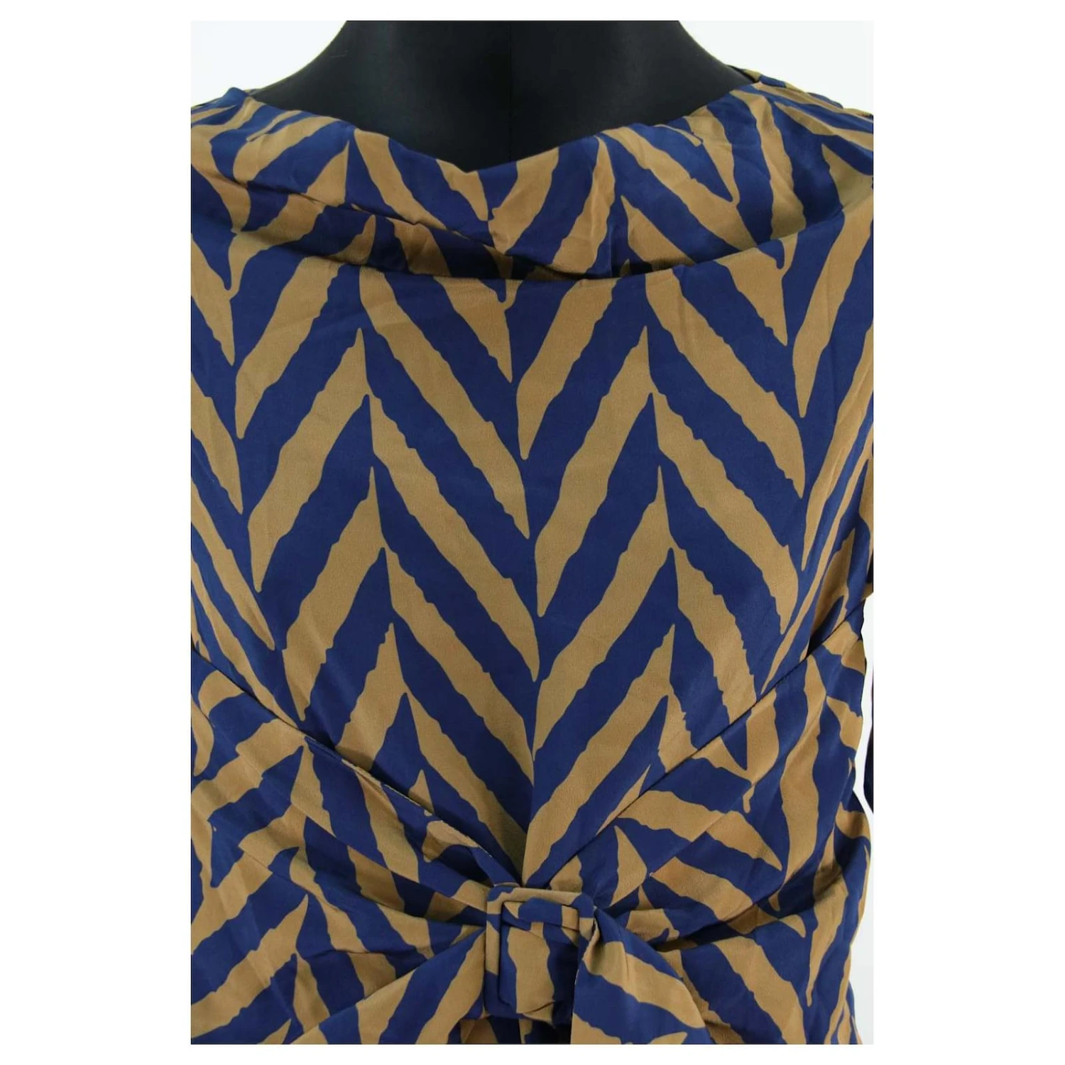 Robe mi-longue – Manches courtes – Épaules 36cm – Aisselles 47cm – Longueur 95cm – Jc De Castelbajac – Bleu – Taille 36 – 100% Soie – Très Bon État – RĂ©fĂ©rence 521007