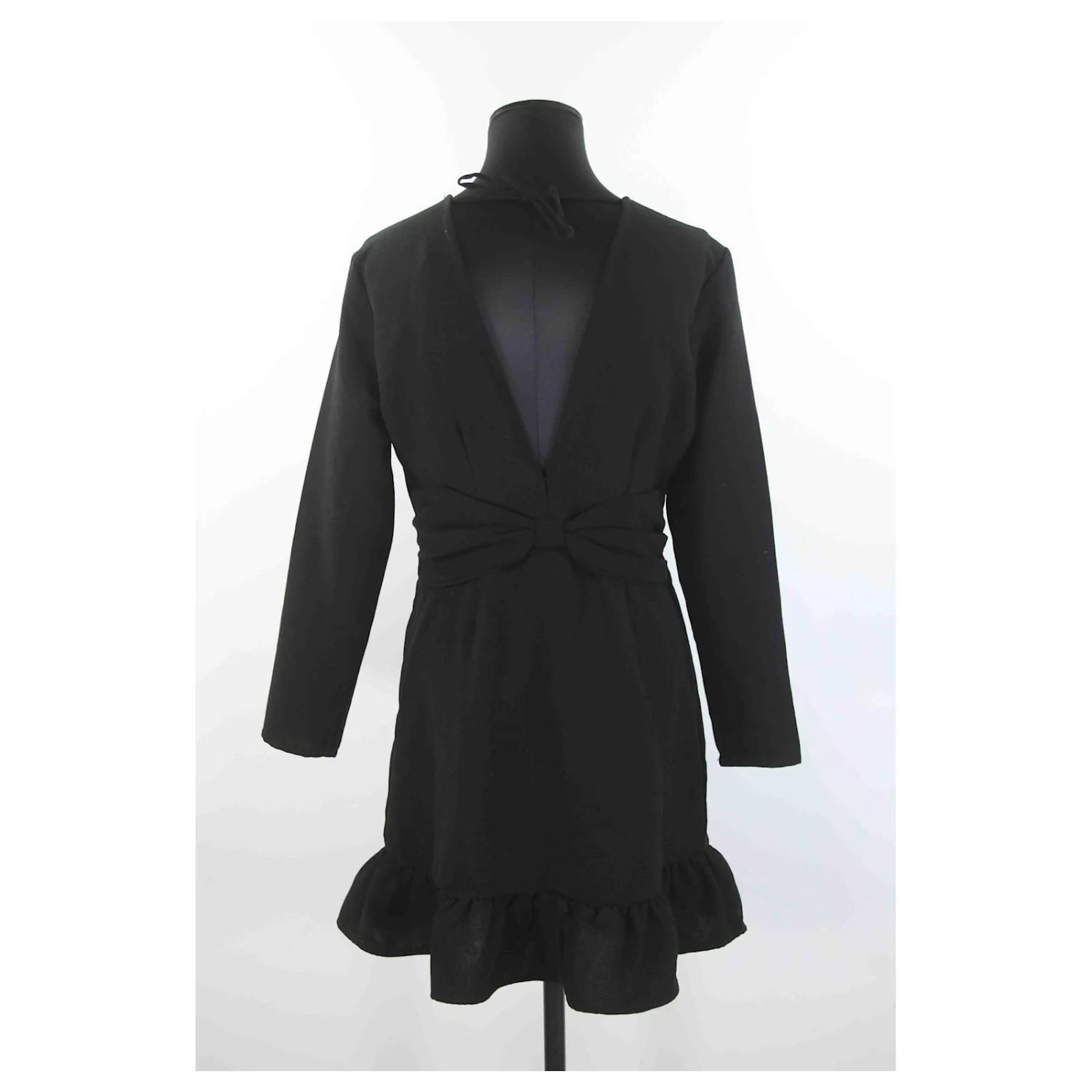 Robe – Karl Marc John – Longueur : 90cm – Aisselles : 43cm – Robe manches longues dĂ©colletĂ© plongeant avec ceinture nĹ“ud et volants – Noir – Taille S – 100% Polyamide – Bon État – RĂ©fĂ©rence 912007