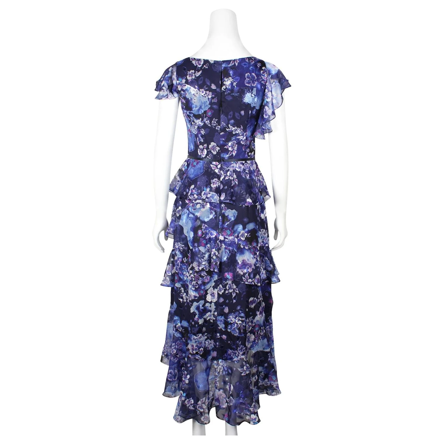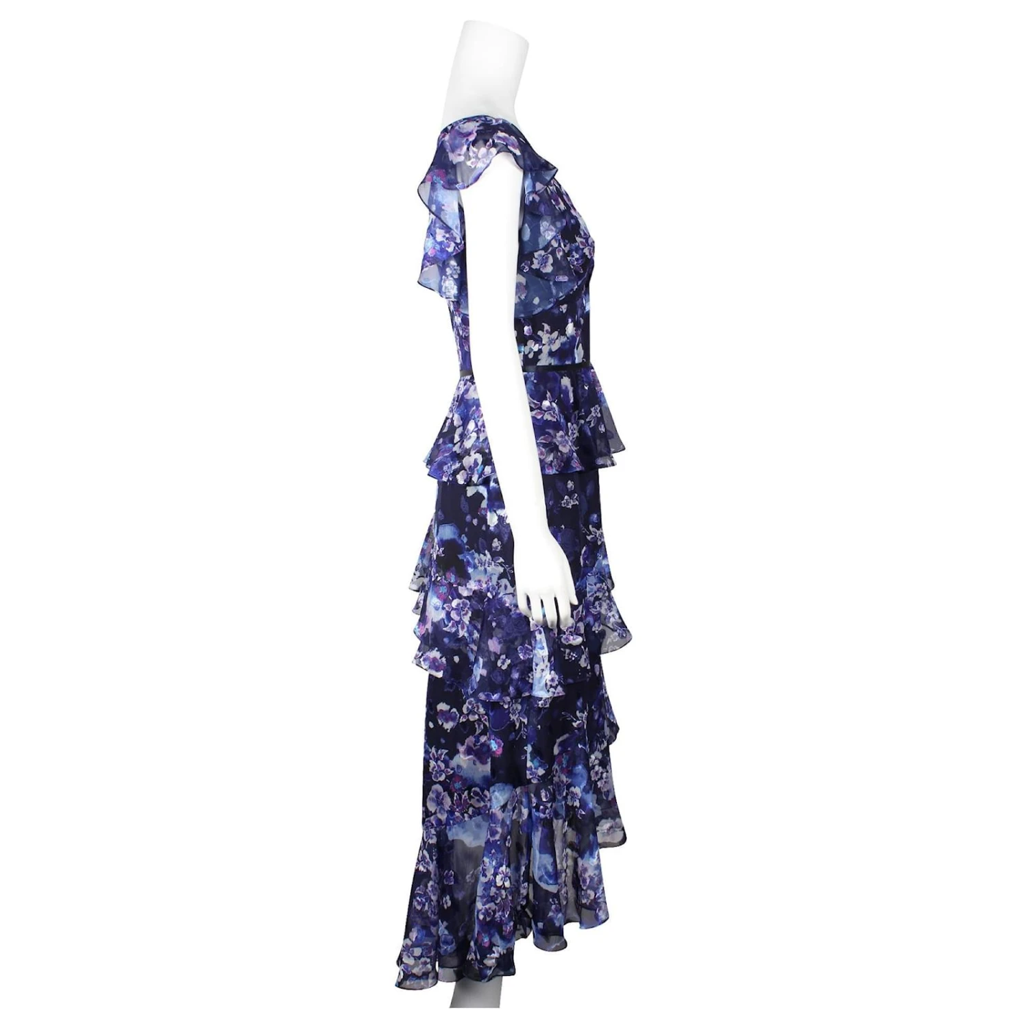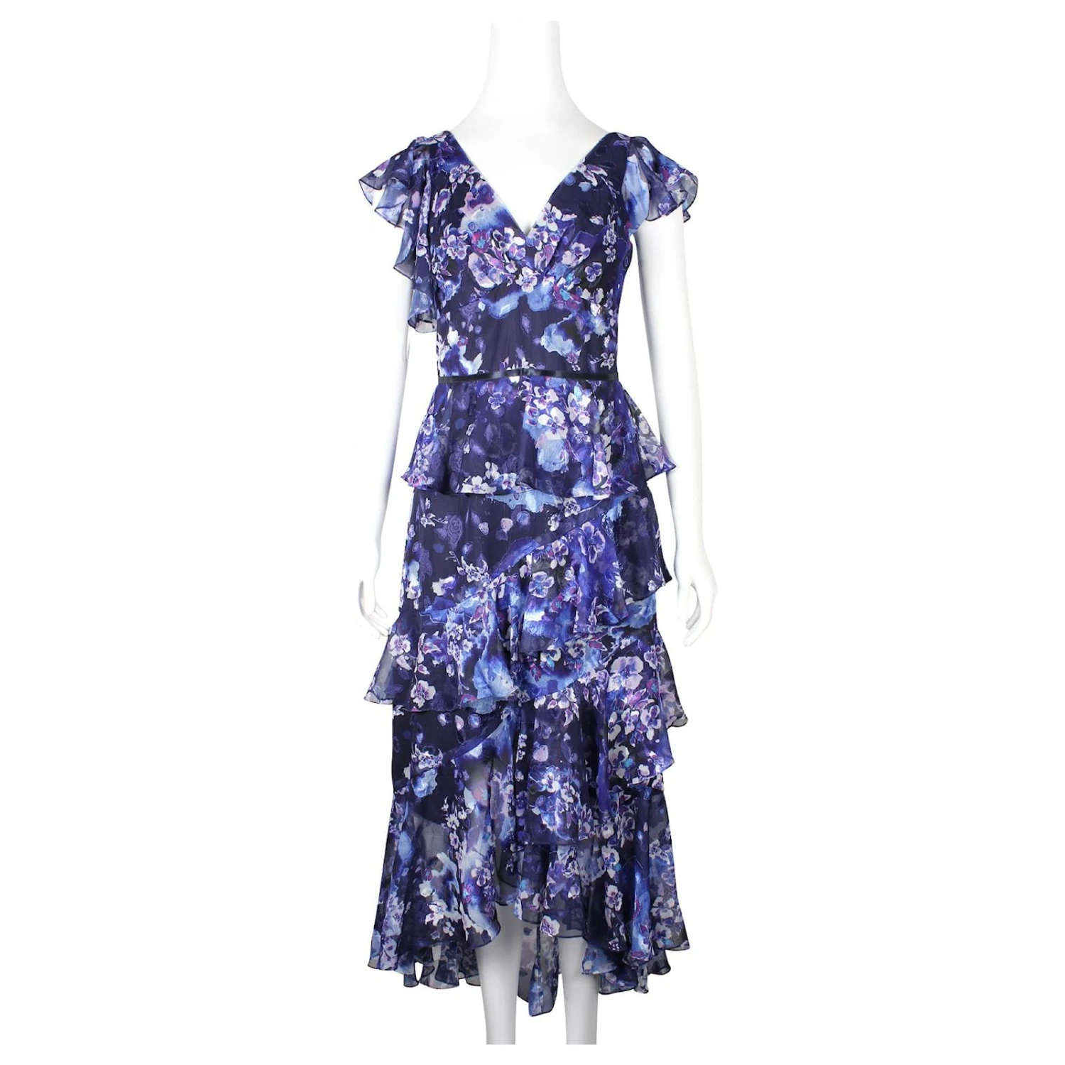 Marchesa Notte – Robe longue bleue à fleurs et à volants
