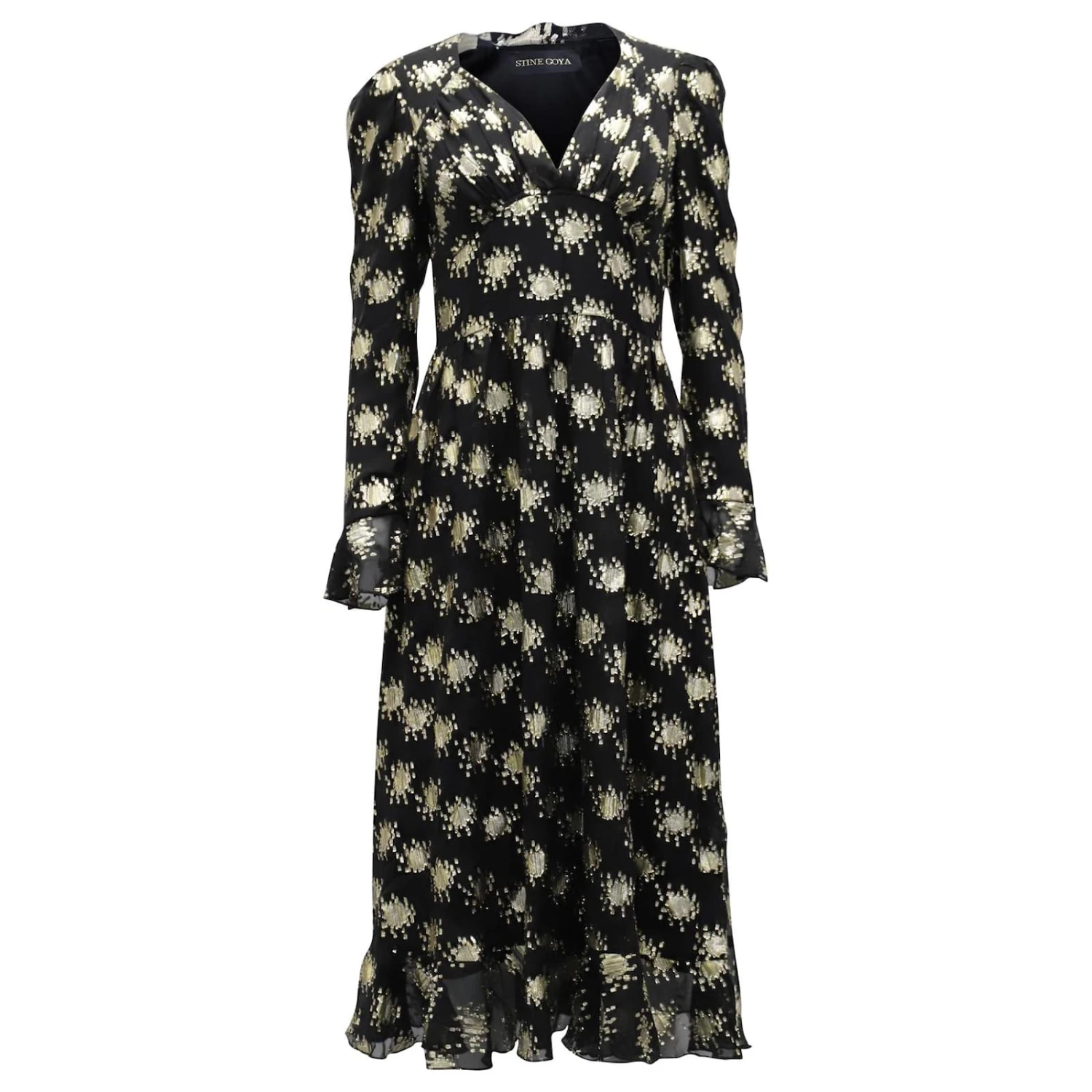 Stine Goya, basĂ©e Ă Copenhague, a commencĂ© comme mannequin et rĂ©dactrice de mode avant de se tourner vers ses propres crĂ©ations.. InspirĂ© du monde de l’art, elle est connue pour ses pièces faciles Ă porter comme cette robe Ă col en V avec des volants et un imprimĂ© d’Ă©toiles sur toute la surface.