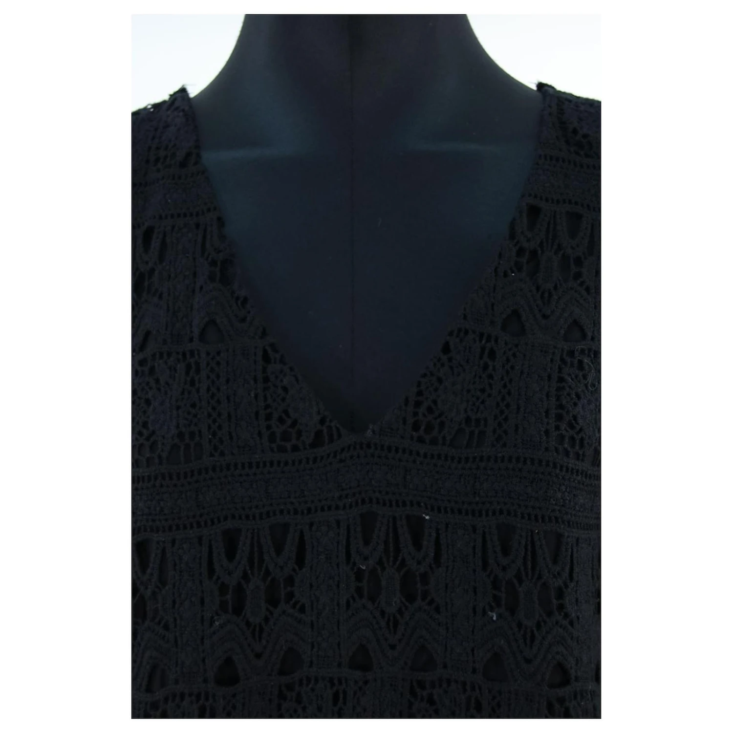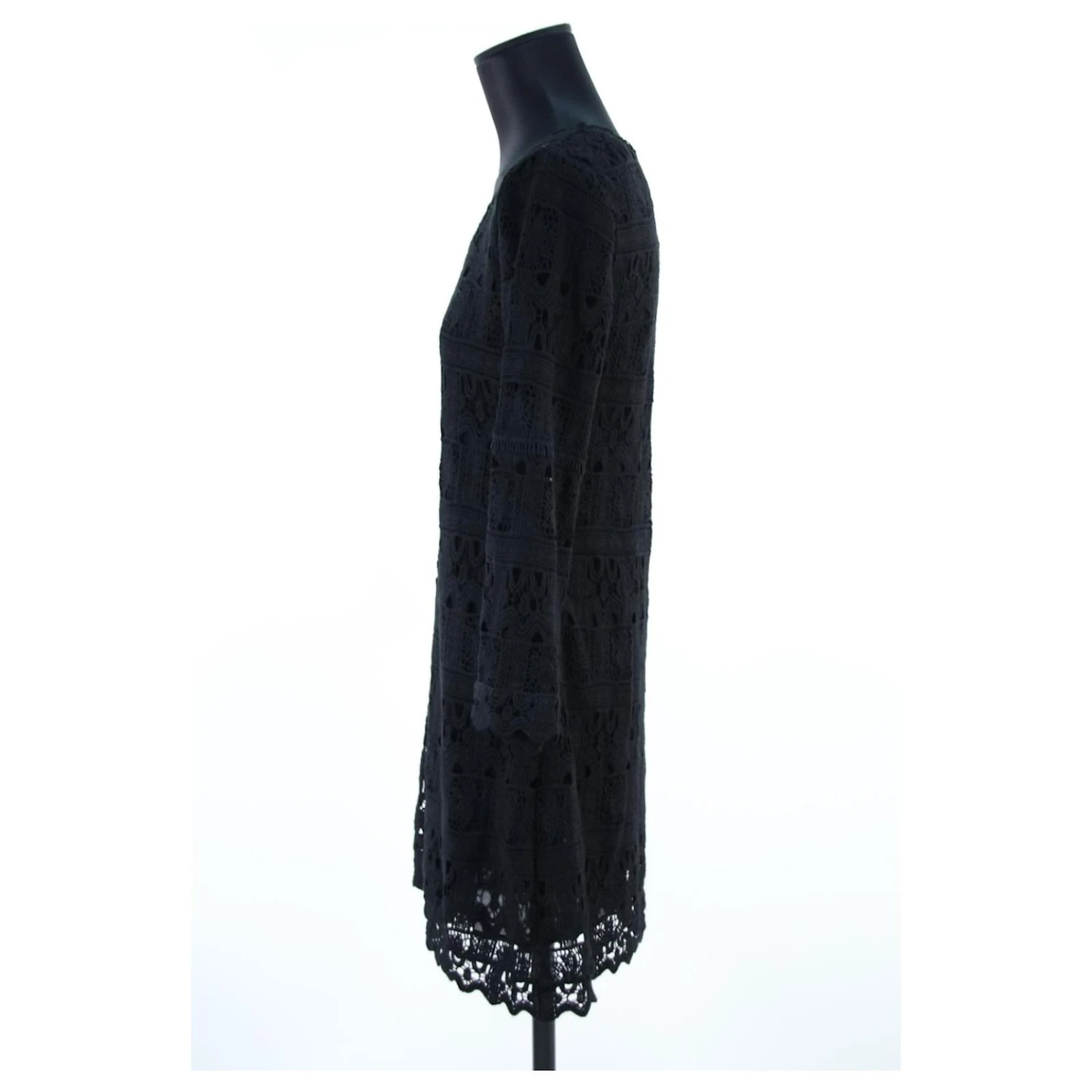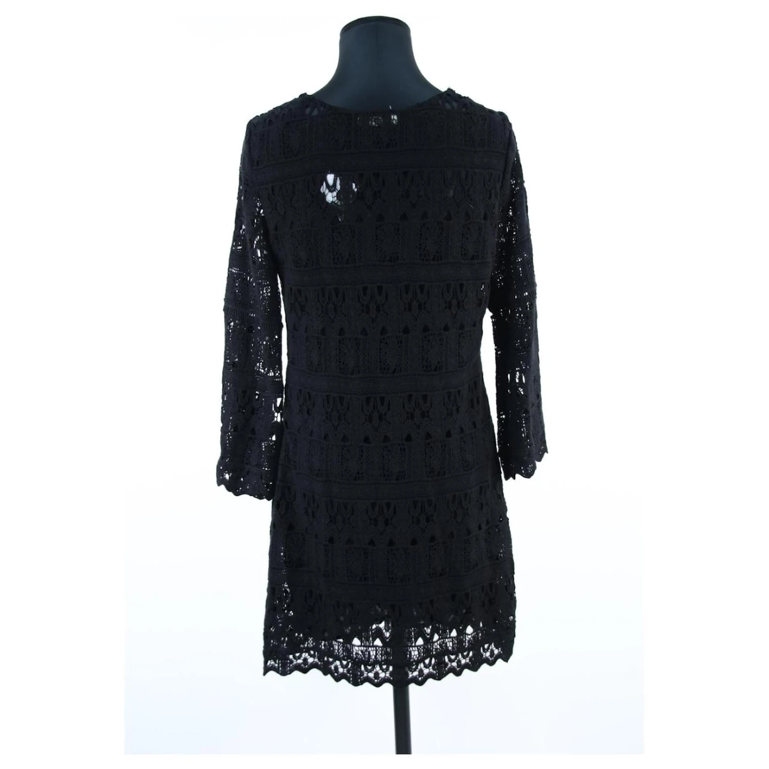 Robe courte en dentelle Ă manches longues – Modèle Elza – Épaules 40cm – Aisselles 47cm – Longueur 90cm – Bash – Noir – Taille 2 – 100% Coton – Très Bon État – RĂ©fĂ©rence 658007