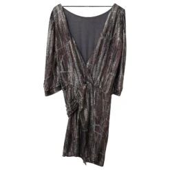 Ba&Sh Robe en maille à effet portefeuille Salina en polyester argenté métallisé