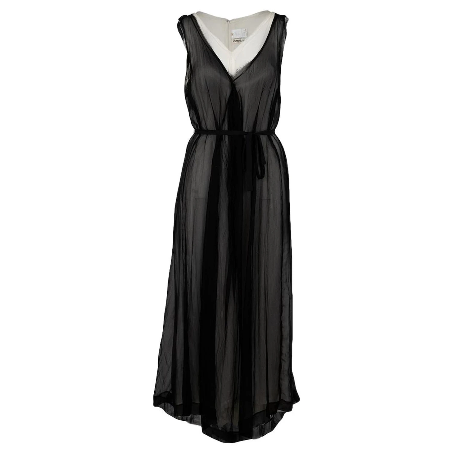 Robe noire et blanche sans manches à bords francs Comme des Garçon, À la grecque, Fermeture à glissière.