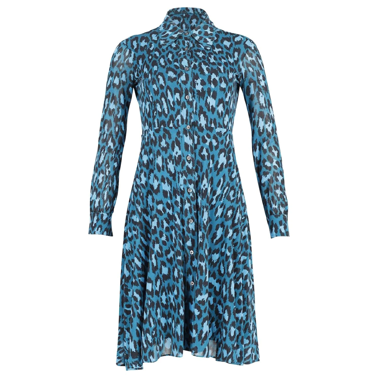 Diane Von Furstenberg Robe boutonnée à imprimé léopard en viscose bleu sarcelle