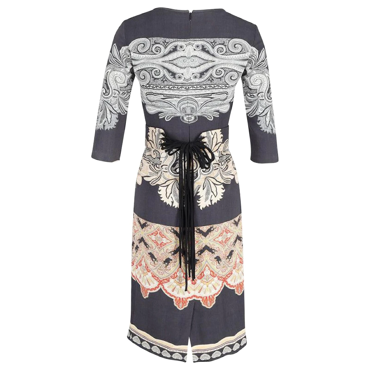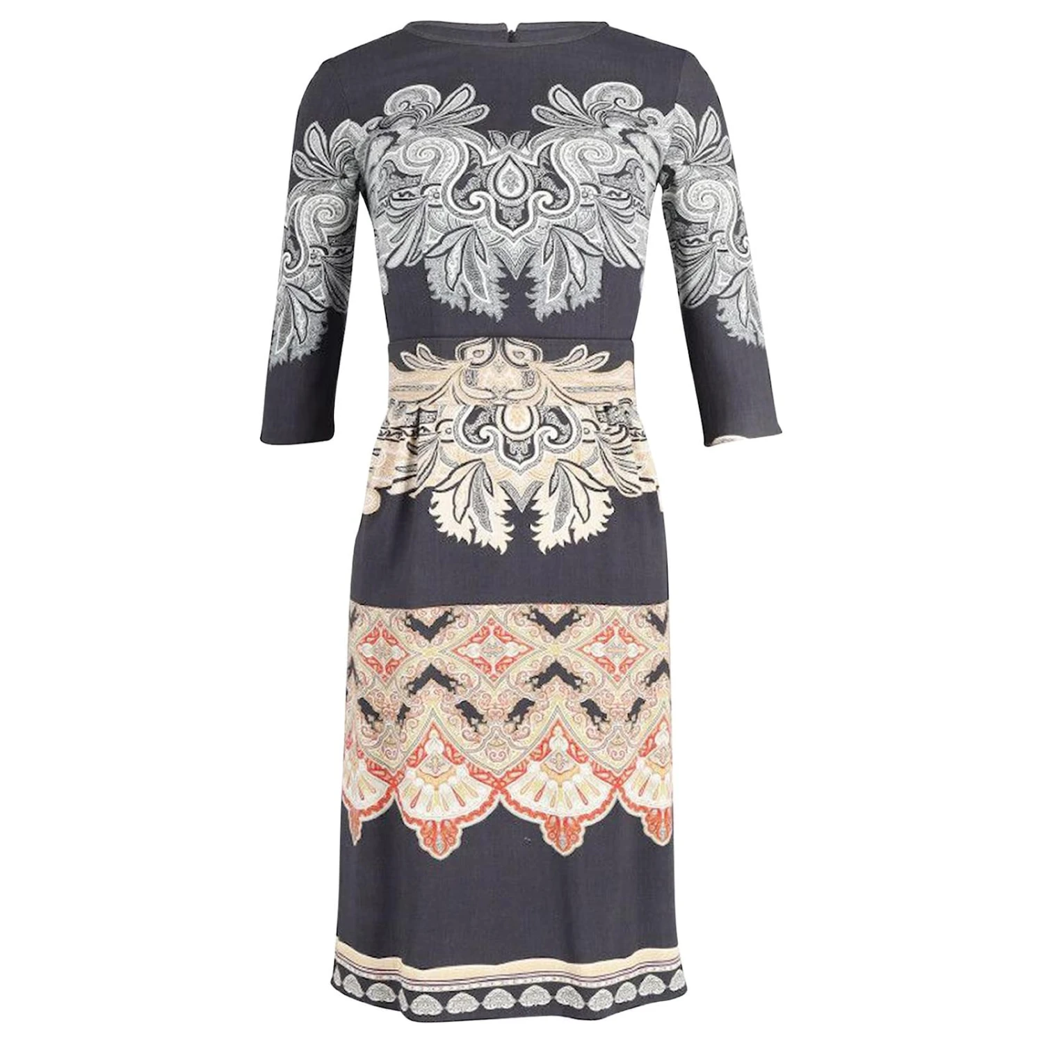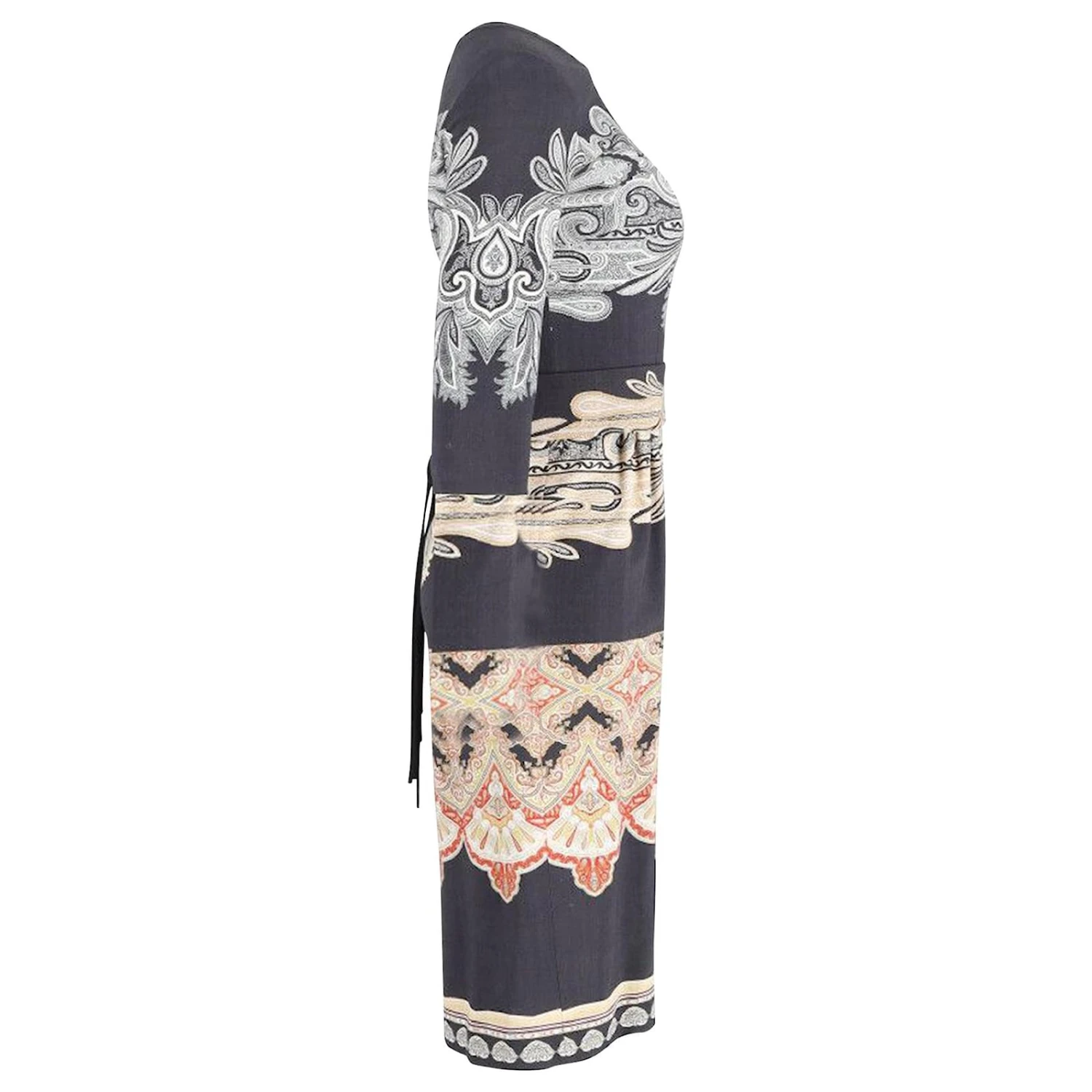 Etro Robe Midi Imprimée à Ceinture en Laine Noire