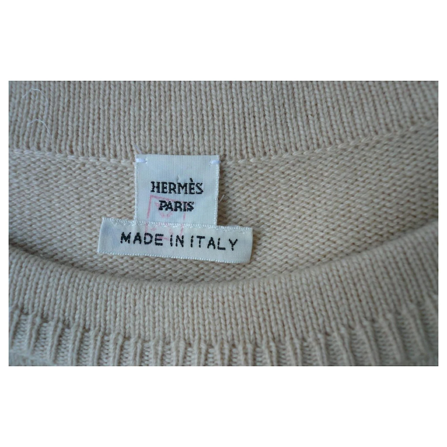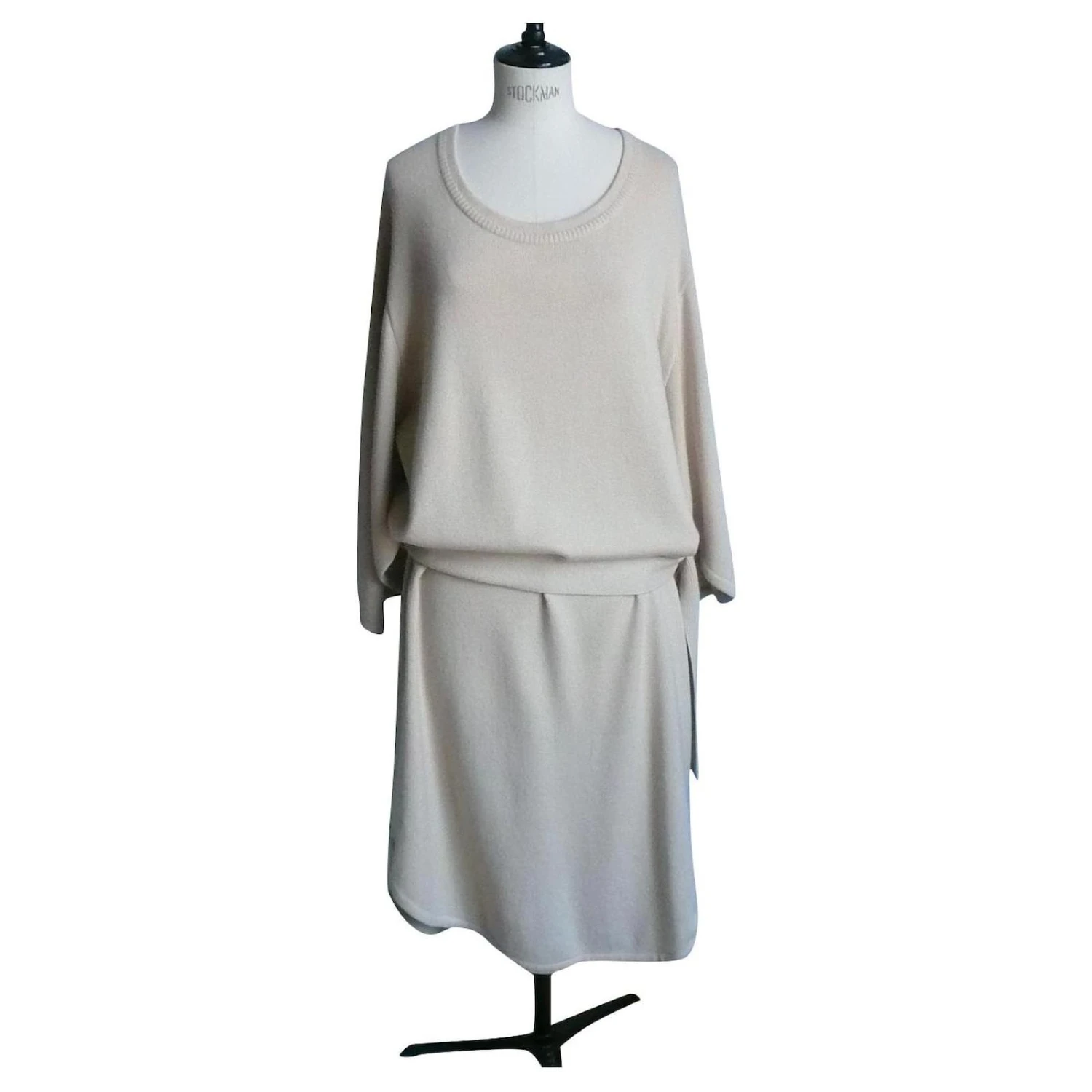 Hermès HERMES Robe Longue Cachemire écru TBE T40 Beige