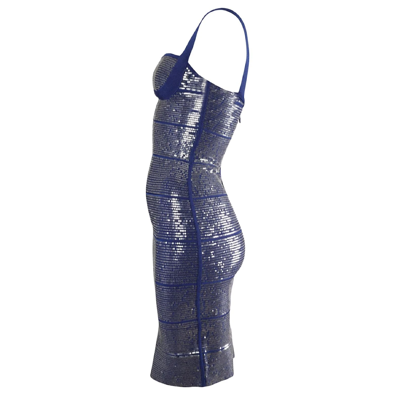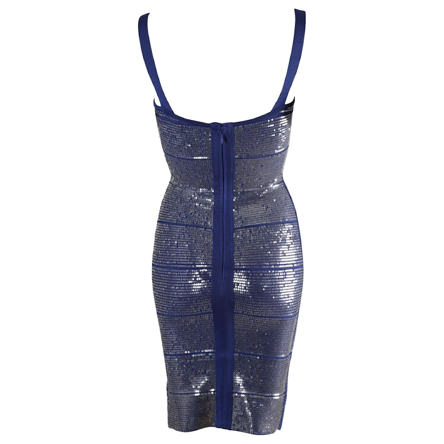 Herve Leger Katherine Bandage Robe à sequins en rayonne bleue