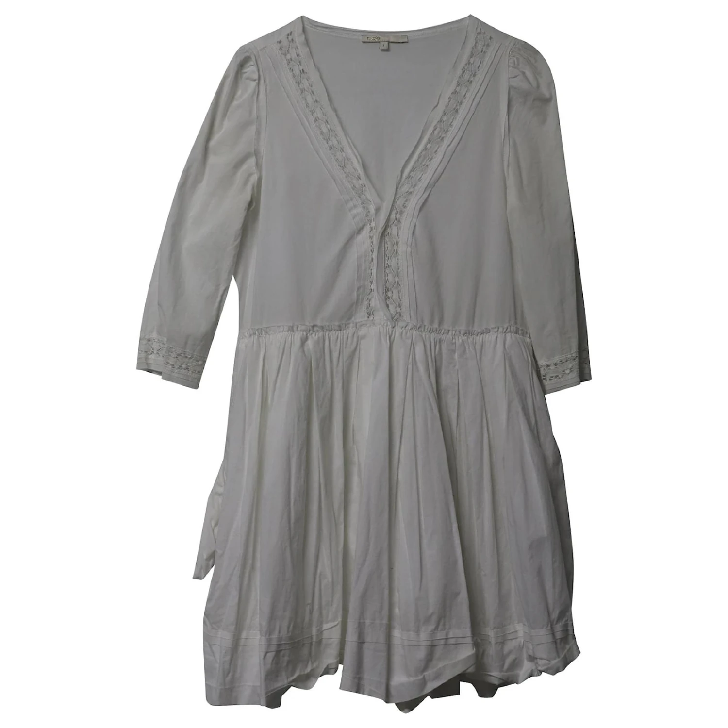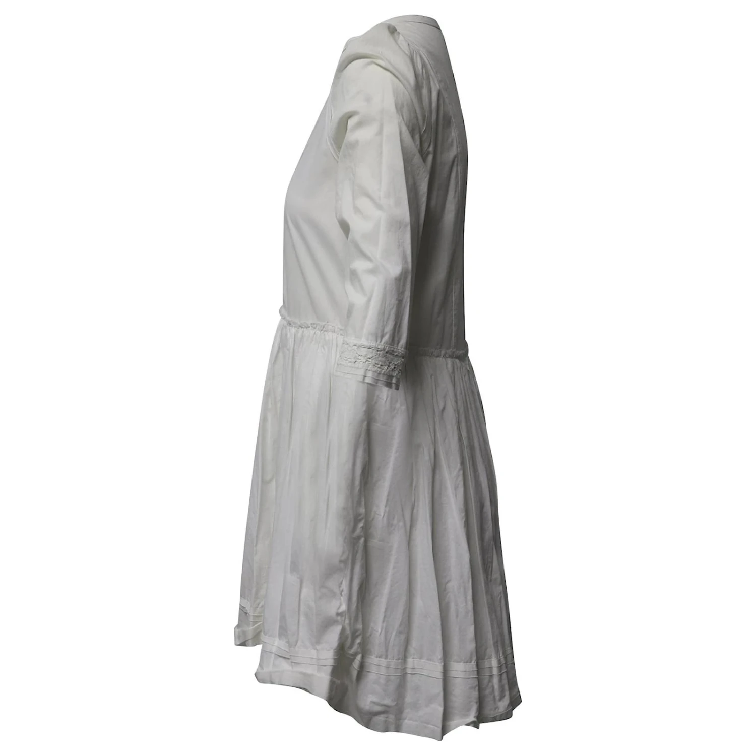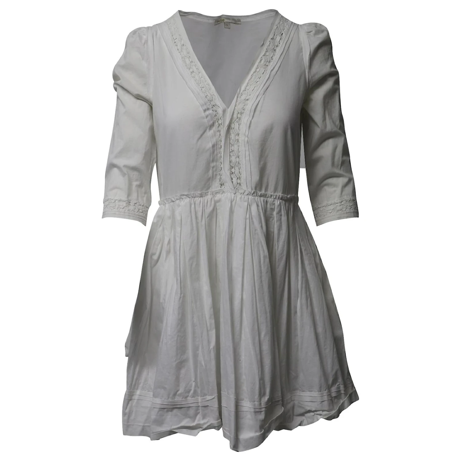 Maje Robe Col V Empiècements Dentelle en Coton Blanc
