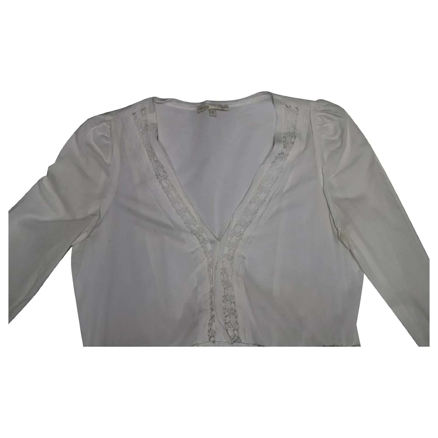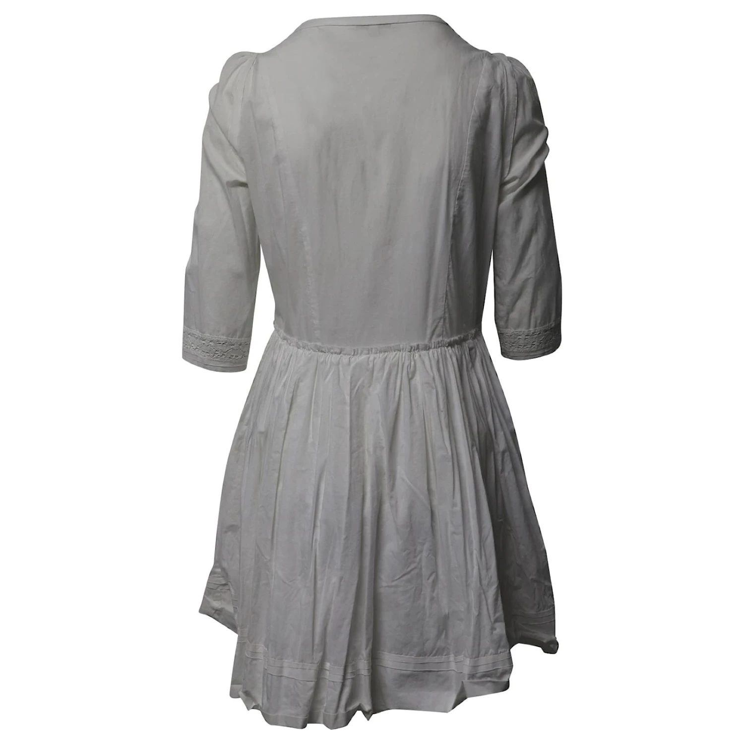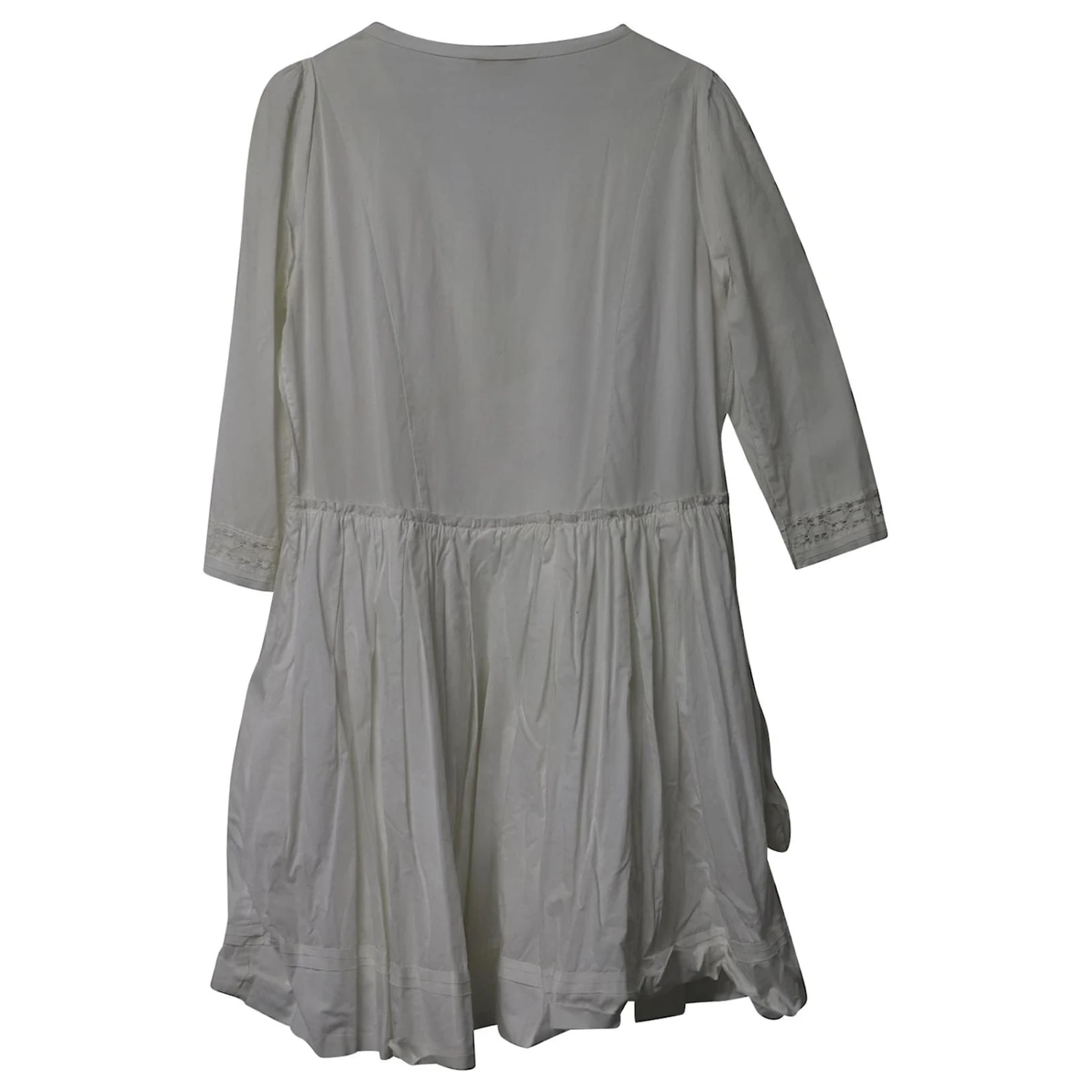 Maje Robe Col V Empiècements Dentelle en Coton Blanc
