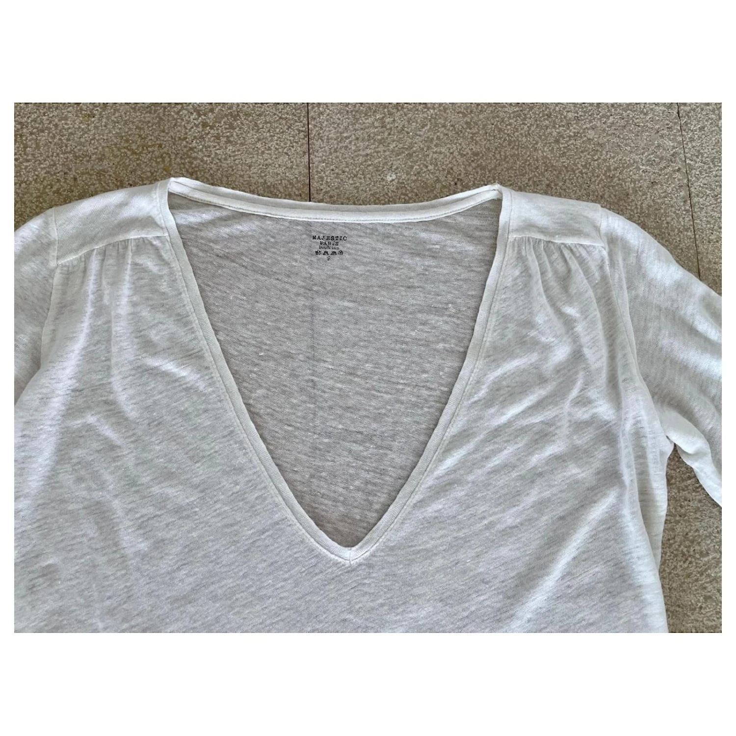 Majestic Tunique Ou Robe T-Shirt Droite 100% Lin écru T.2 Crème