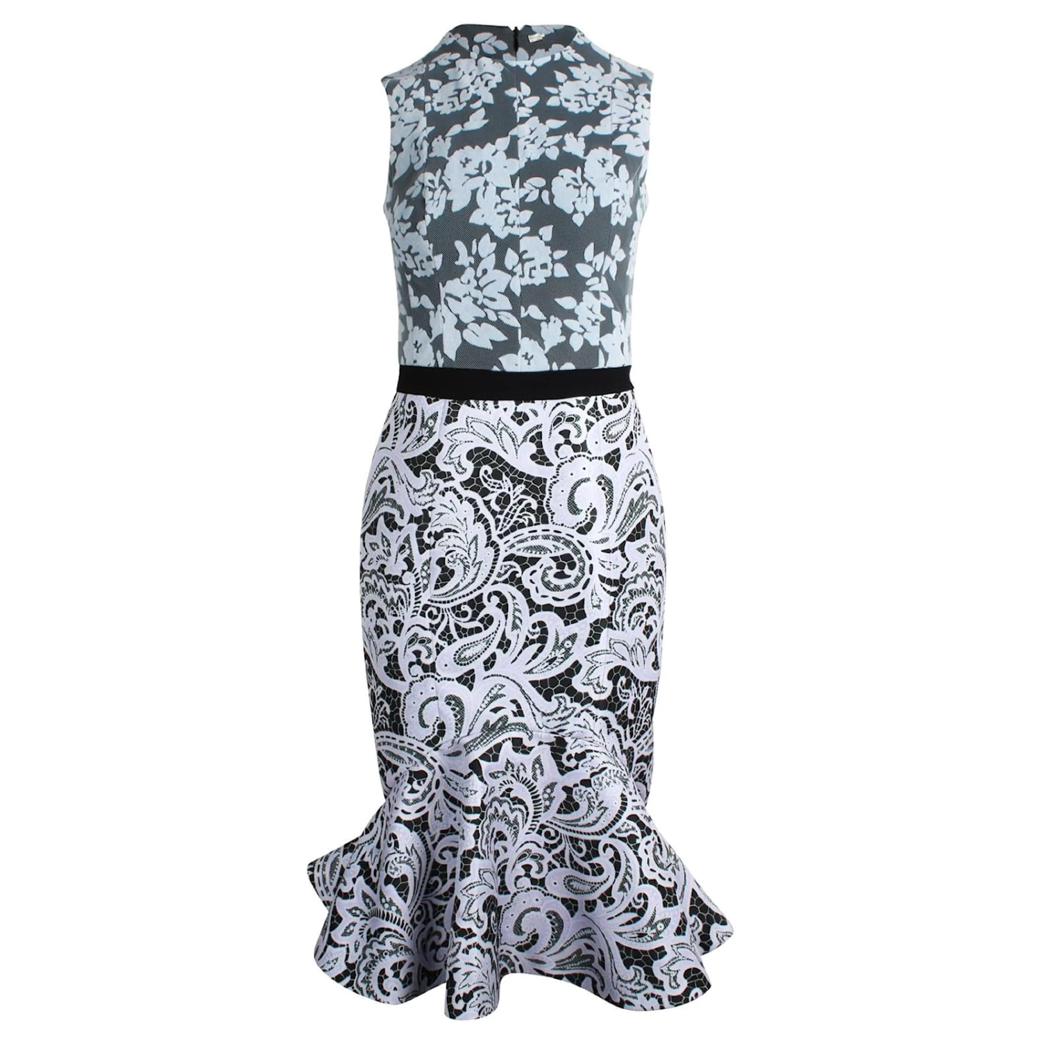 La robe mi-longue Ă fleurs de Mary Katrantzou a Ă©tĂ© confectionnĂ©e en polyester bleu clair avec un imprimĂ© floral. Fully lined, ce style sans manches est dĂ©taillĂ© avec une encolure ras du cou et une fermeture Ă glissière dissimulĂ©e Ă l’arrière.