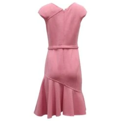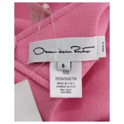 Cette robe midi rose est signée Oscar de la Renta. Cette robe séduit par son design féminin d’un décolleté en V, ceinture, mancherons, ourlet flottant, et une silhouette ajustée. Le détail de l’ourlet flottant affine le design autrement simple.