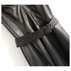 Prada PF15 Robe Ceinturée En Cuir Noire