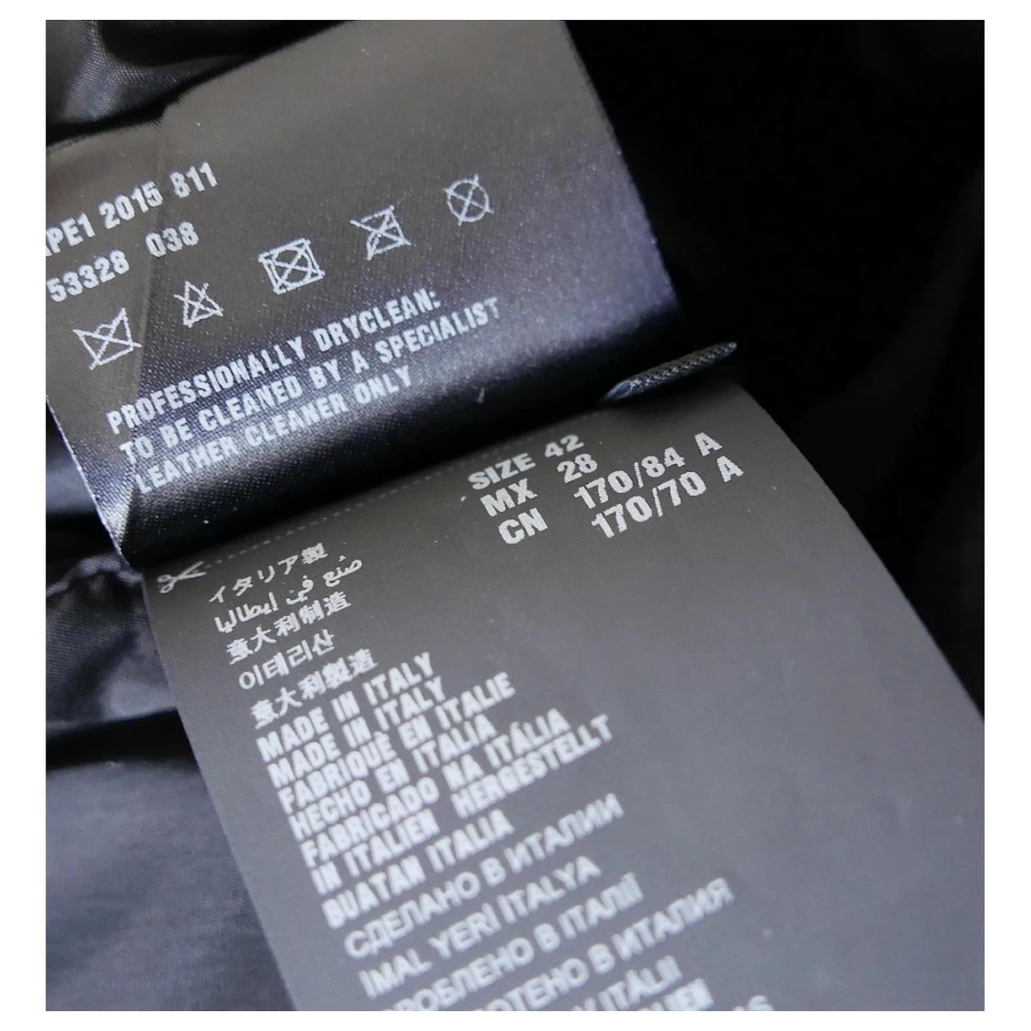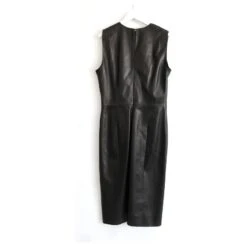 Fabriqué à partir de cuir d’agneau noir ultra doux avec doublure en satin, il a une coupe ondulée super flatteuse avec des détails pliés à l’avant et est livré avec une ceinture en cuir en option. A fermeture éclair au dos. Taille IT42/UK10. Dimensions approximatives – buste 34’’, taille 29”, hips 38″Et longueur 39.5”