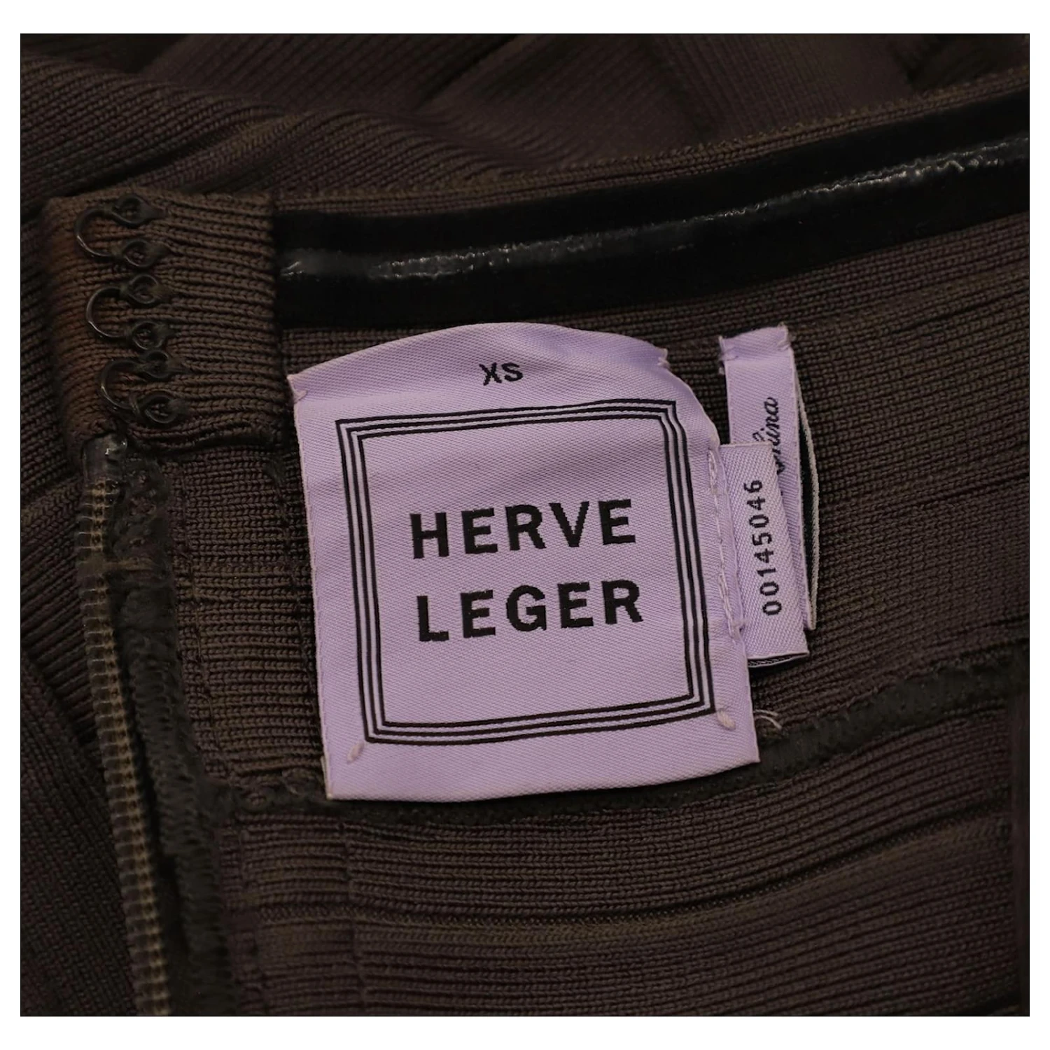 Cette robe bandage sans bretelles Herve Leger est fabriquée à partir de rayonne luxueusement texturée, un tissu luxueux qui drape juste comme il faut. Il présente un détail latéral complexe, Fermeture à glissière au dos, et un ourlet droit.