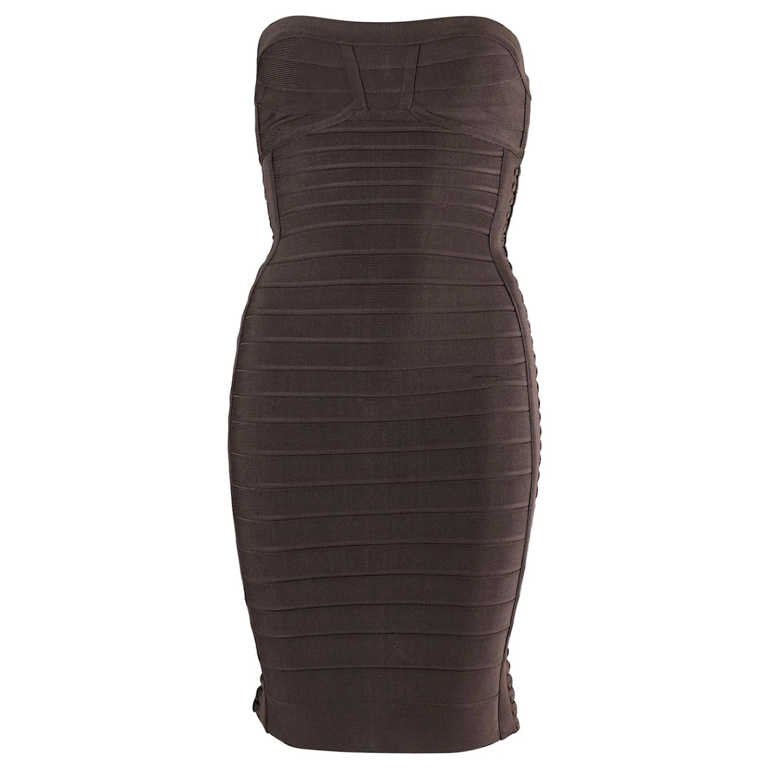 Robe bandage Herve Leger sans bretelles en rayonne grise