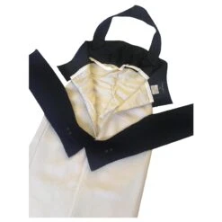 S’ouvre avec des boutons signĂ©s et un zip arrière,2 poches latĂ©rales, cĂ´tĂ©s de la poitrine lĂ©gèrement dĂ©sossĂ©s. Fully lined.