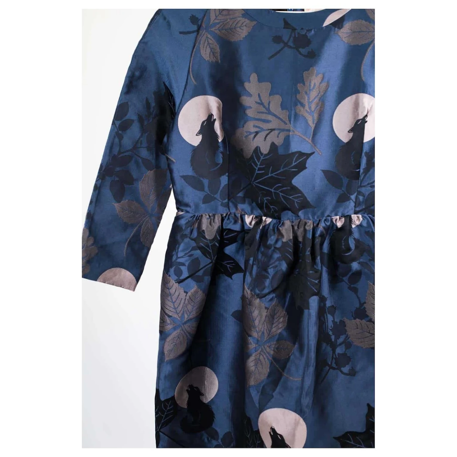 Robe Courte Manches Longues Col Rond Imprime Nuit Longueur 81Cm Poitrine 45Cm – Paul & Joe – Taille 42 – 100% Polyester – Bleu – Bon Etat – Ref 197108