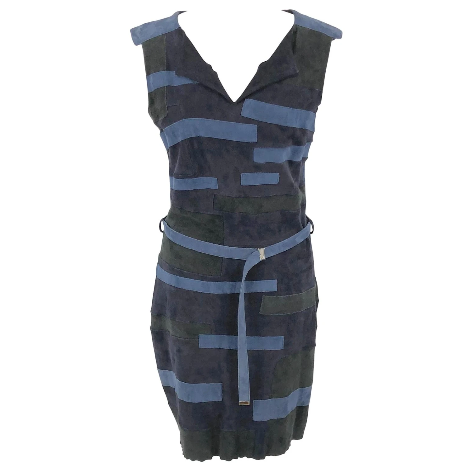 Robe Jitrois en daim stretch avec patchwork bleu et noir