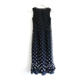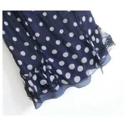 Adorable robe vintage Miu Miu de la fin 1990S. En mousseline de soie douce à pois bleu marine et blanc avec une doublure en satin de soie. Il a une robe de thé super féminine coupée avec des volants et des volants et a une fermeture à boutons-pression sur le côté. En excellent état. Taille IT38/UK6. Mesure environ – buste 32”, taille 28”, hips 34″Et longueur 43”.