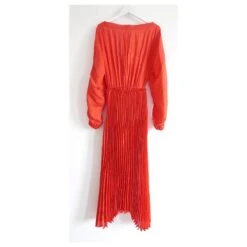 Superbe robe Rejina Pyo Elise. achetĂ© pour ÂŁ595 et nouveau avec Ă©tiquette. FabriquĂ© Ă partir de brillant, texture froissĂ©e polyester rouge orangĂ©, il a une jupe plissĂ©e longueur mollet, ceinture Ă nouer Ă©troite en option, col bateau boutonnĂ© et manches boutonnĂ©es pouvant se porter ouvertes ou fermĂ©es. UK10/ Fr38. Mesure environ – buste 34”, taille 27”, hanches libres et longueur 50”