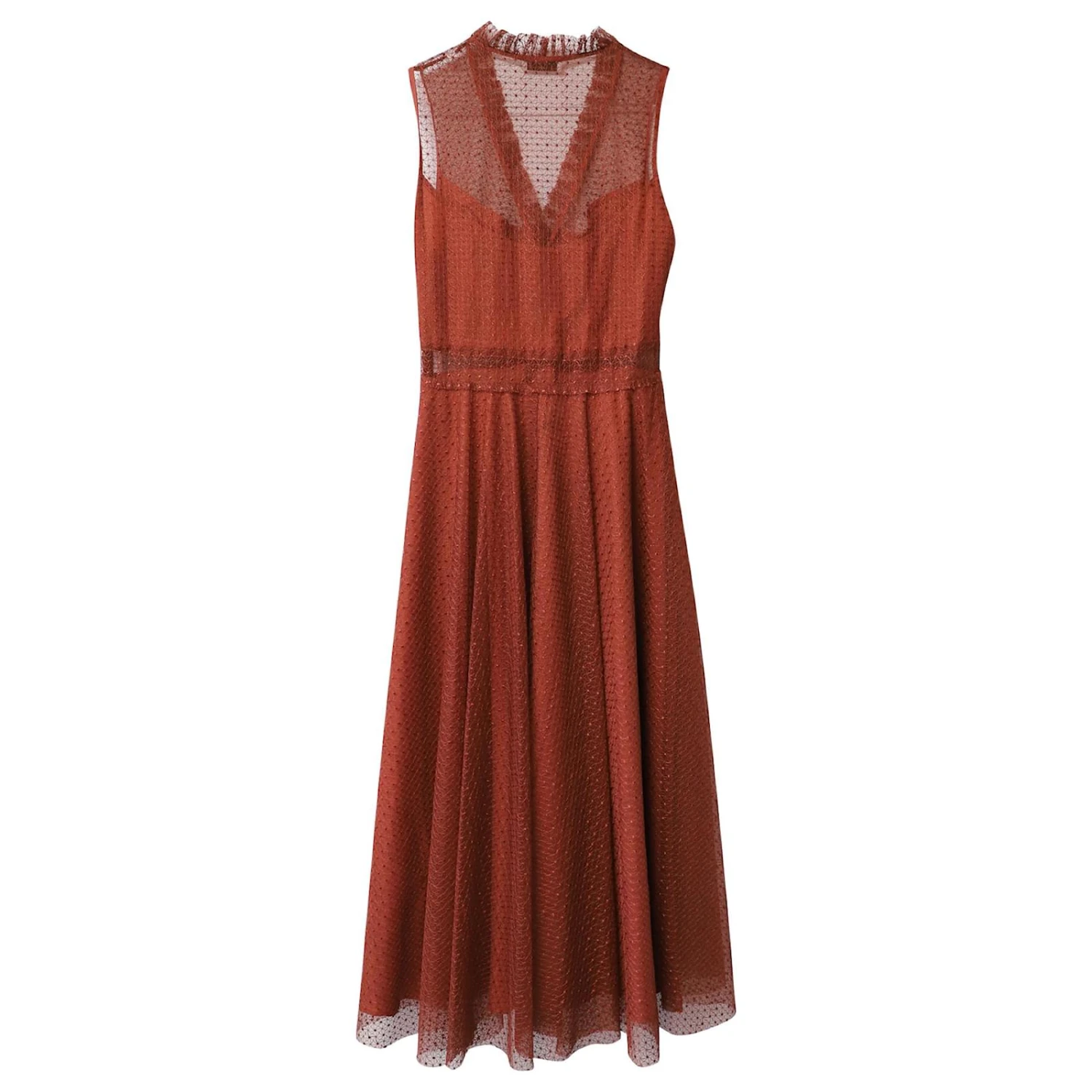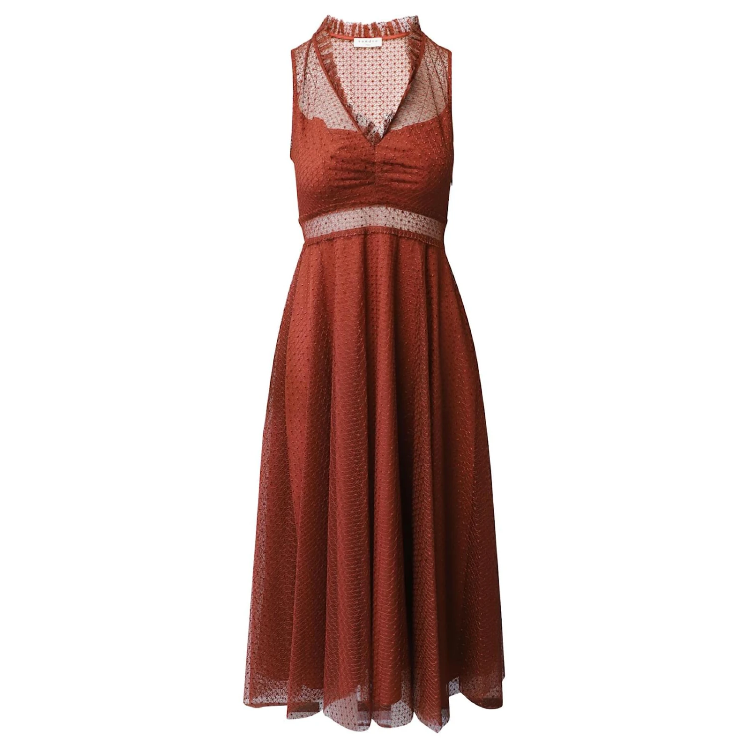 Sandro confectionne cette robe aux teintes riches à partir de tulle vaporeux recouvert de broderies complexes pour une finition texturée. Formes de bordure à volants au col en V et fronces à la poitrine pour des touches volumineuses, et il est stratégiquement laissé transparent à certains endroits pour attirer l’attention sur votre taille. Une doublure intégrale assure un tombé impeccable de la jupe évasée et cannelée. Aiguisez la vôtre avec des talons aiguilles pointus.