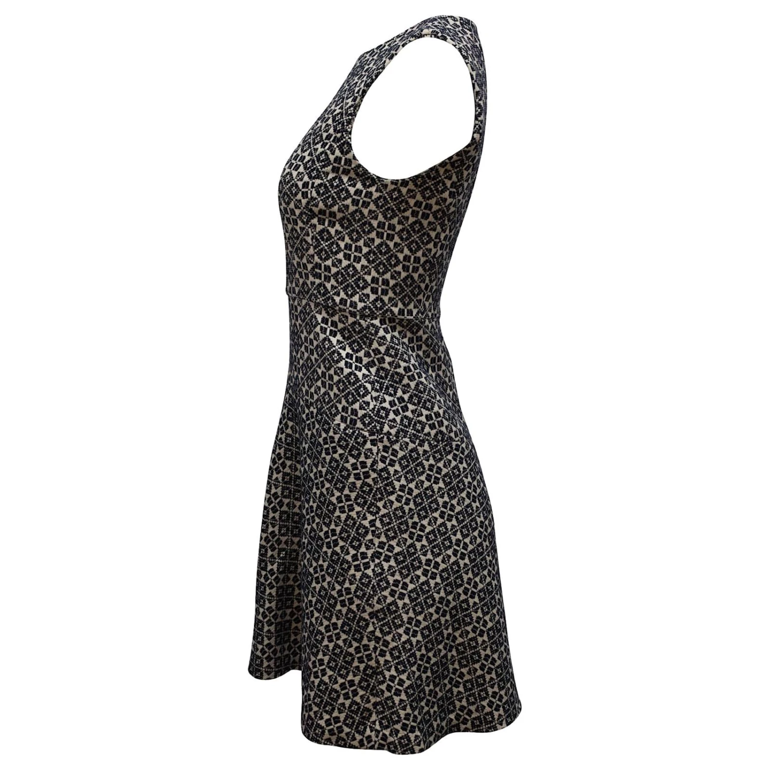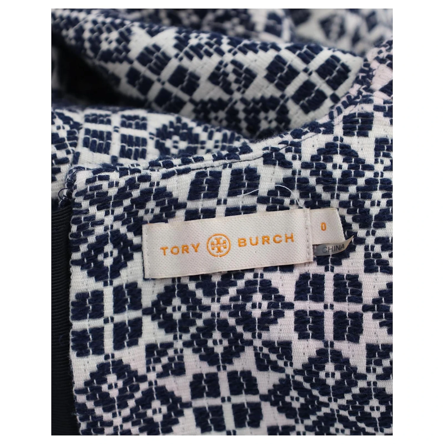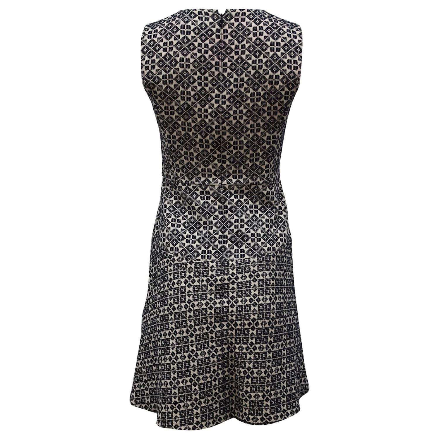 Robe sans manches brodée géométrique Tory Burch en coton noir et blanc