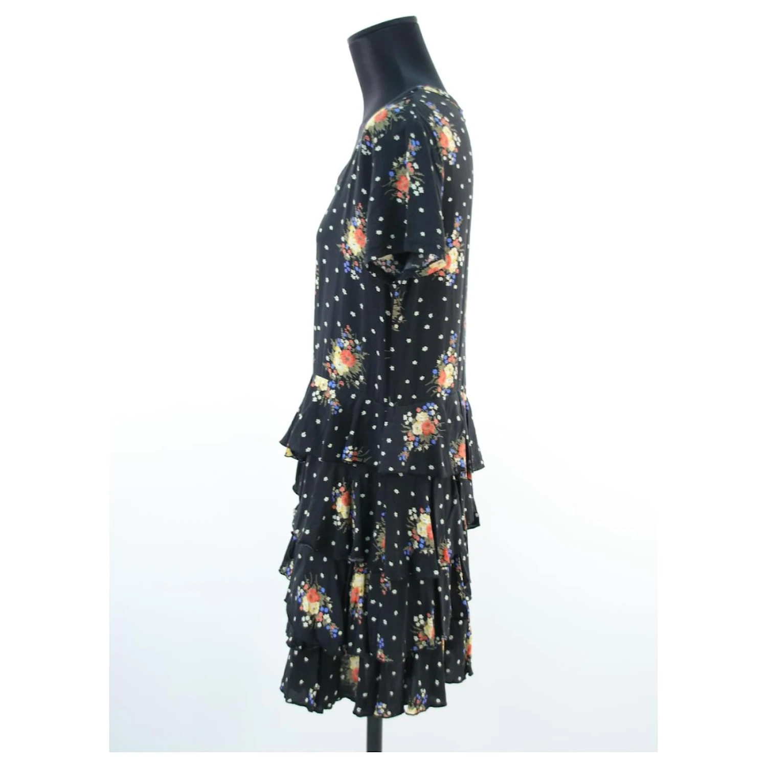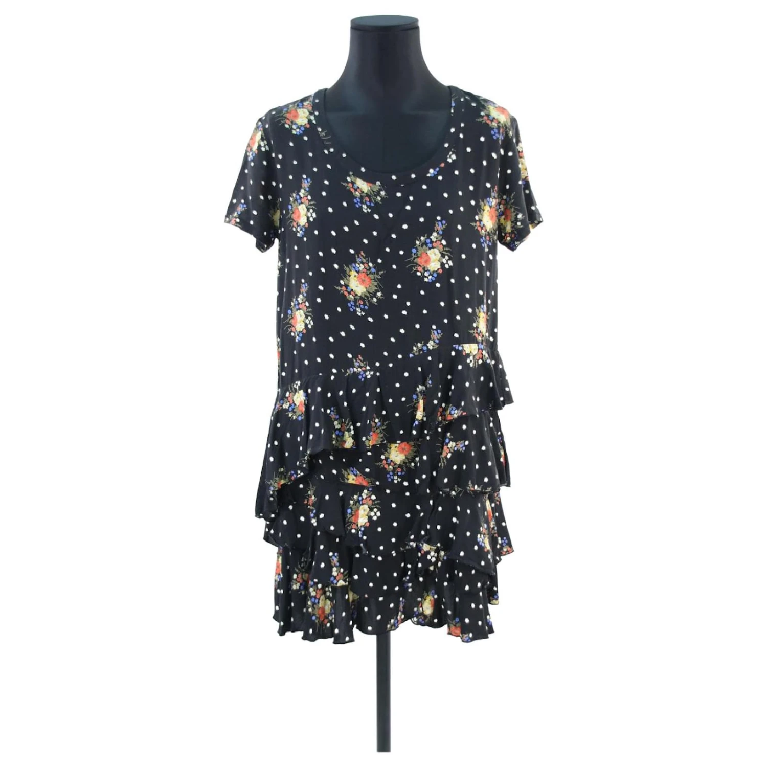 Robe courte fleurie – Manches courtes – Épaules 42cm – Aisselles 40cm – Longueur 85cm – The Kooples – Noir – Taille 2 – 100% Viscose – Très Bon État – RĂ©fĂ©rence 554013