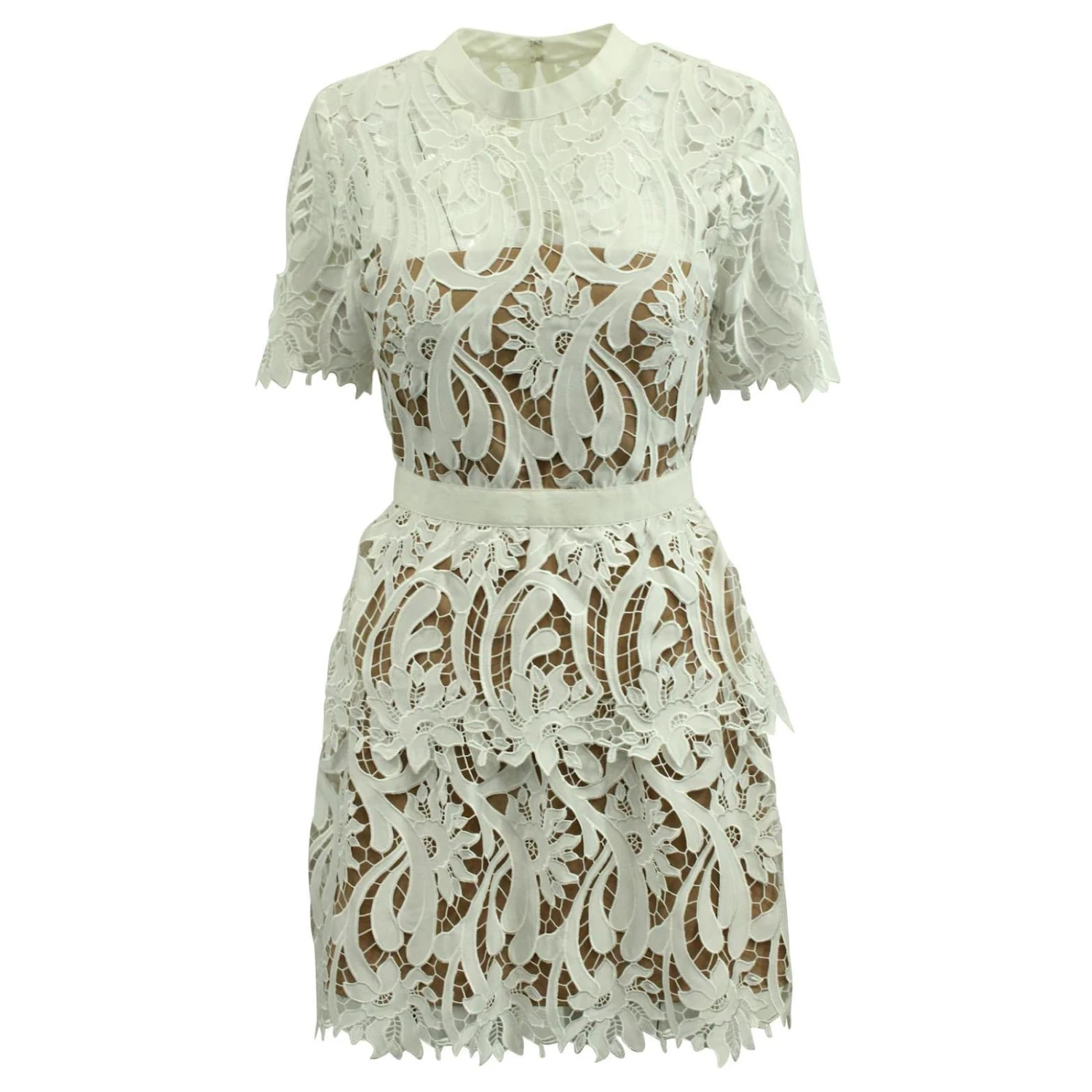 Mini robe trapèze en dentelle Self-Portrait en polyester blanc