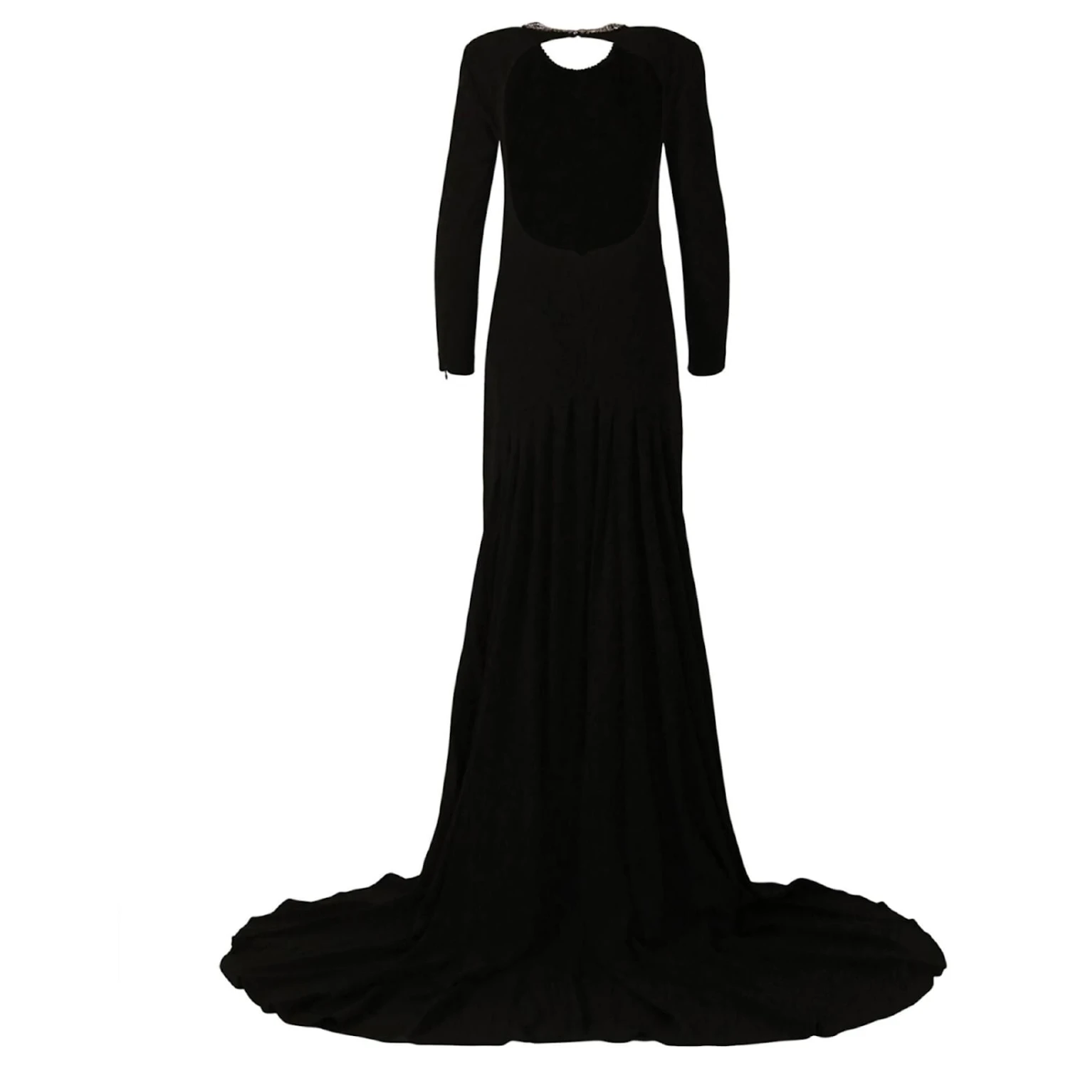 S’enfile simplement; 64% Viscose, 32% Condition d’excellence, 4% élasthane; Manche longue, La longueur du sol, Ouvrir en arrière; Accents de franges oscillantes, haut du dos en tulle transparent; ;