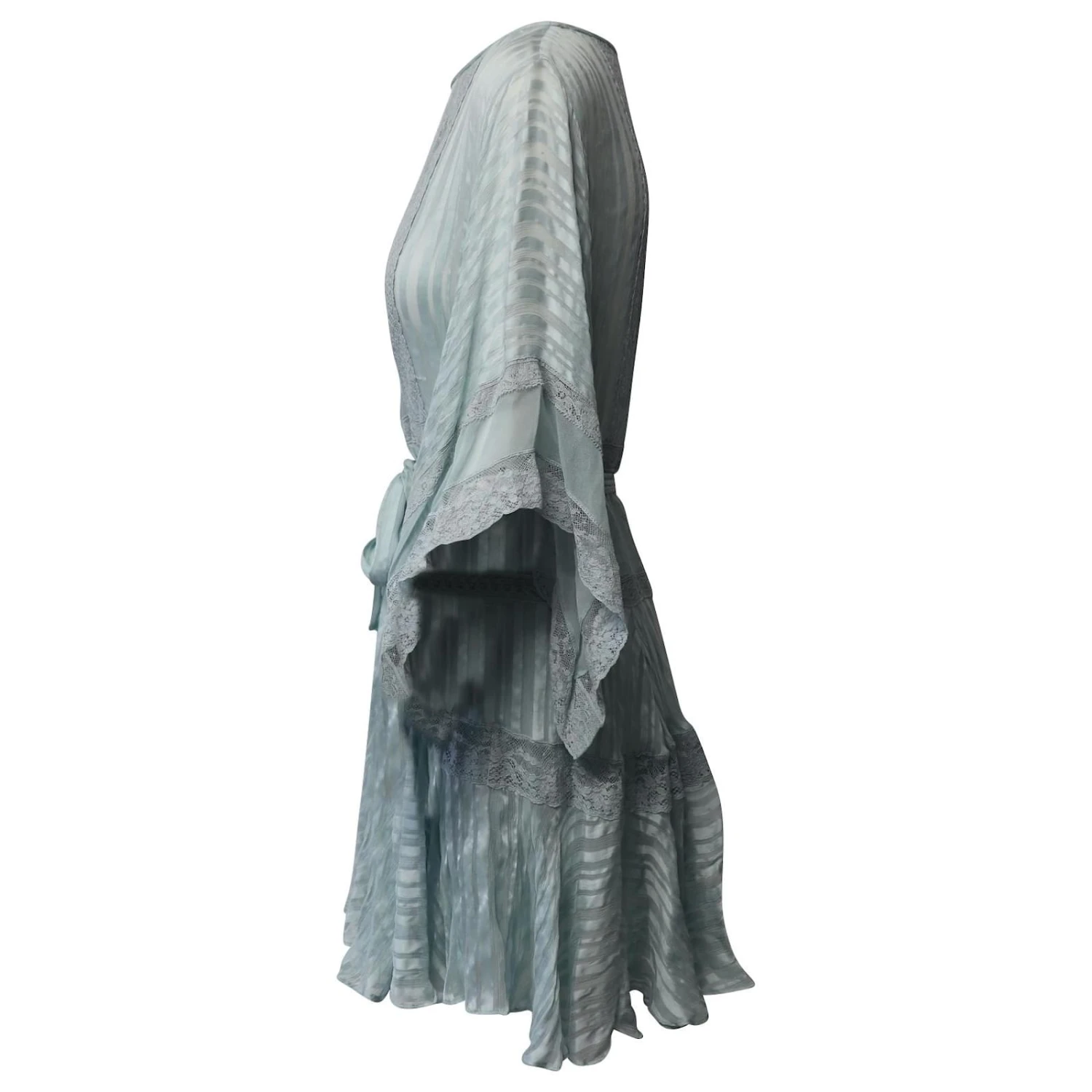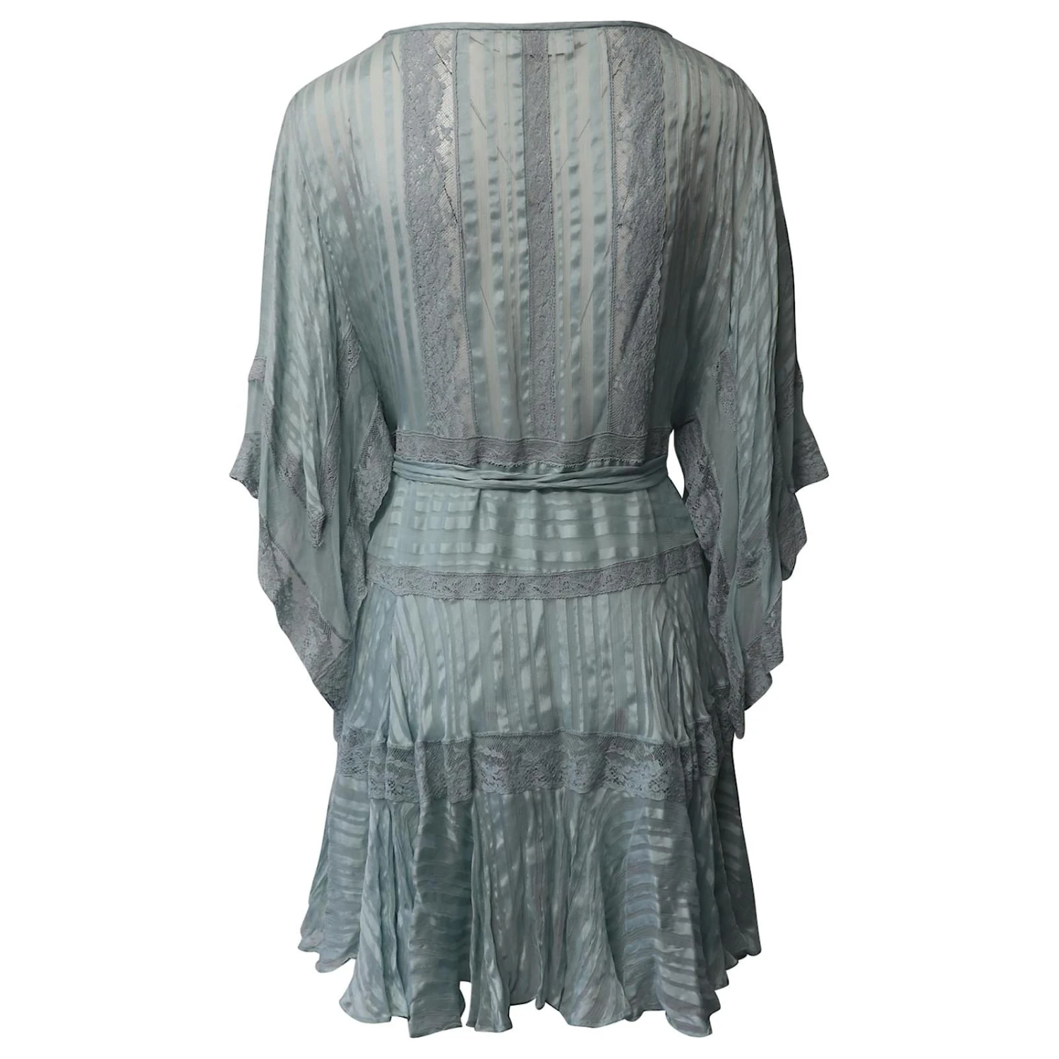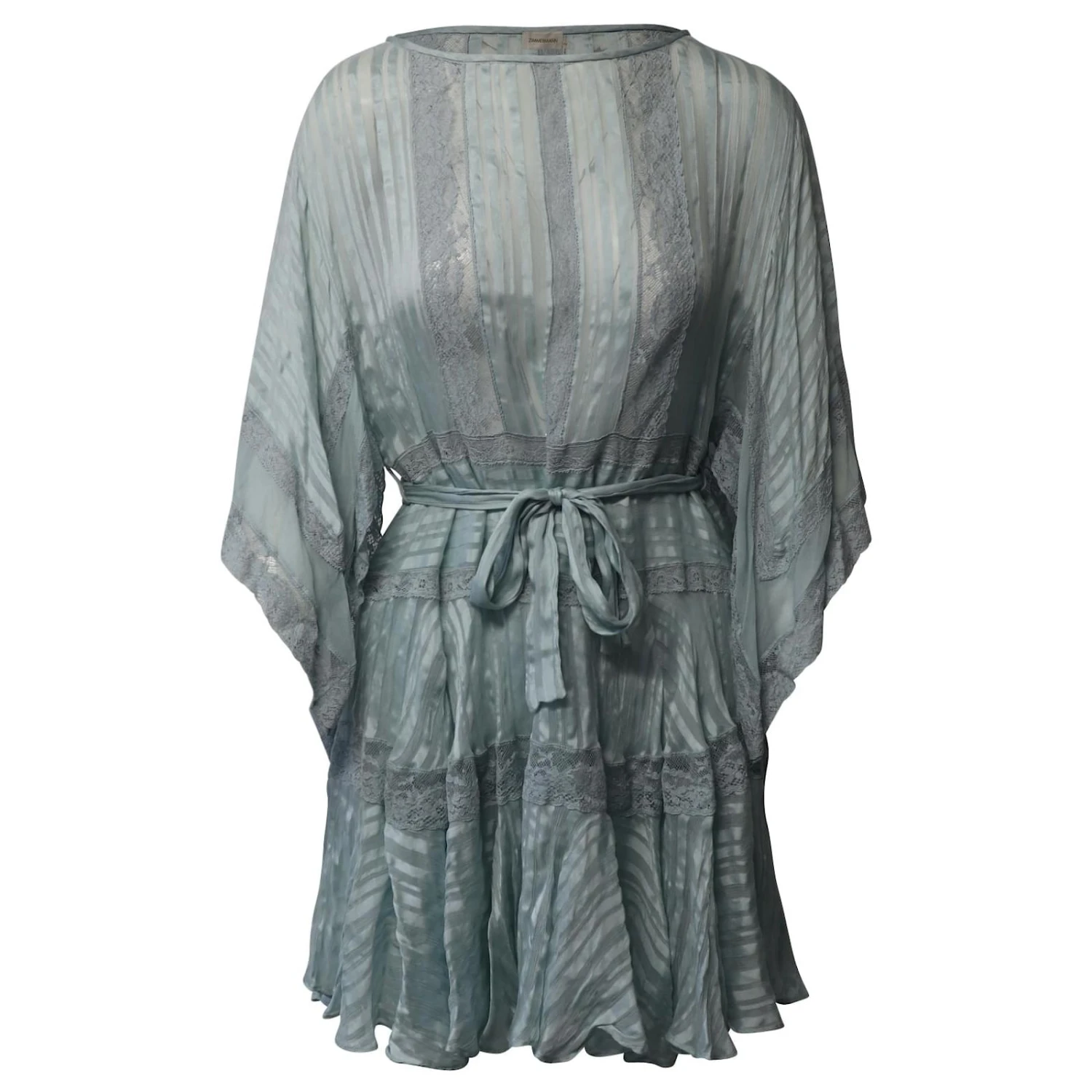 Cette mini-robe transparente féminine de Zimmermann présente des manches cape, Col rond, manches cape trois-quarts avec bordure en dentelle, taille à nouer et ourlet à volants. Parfait pour les jours d’été ou pour la superposition.